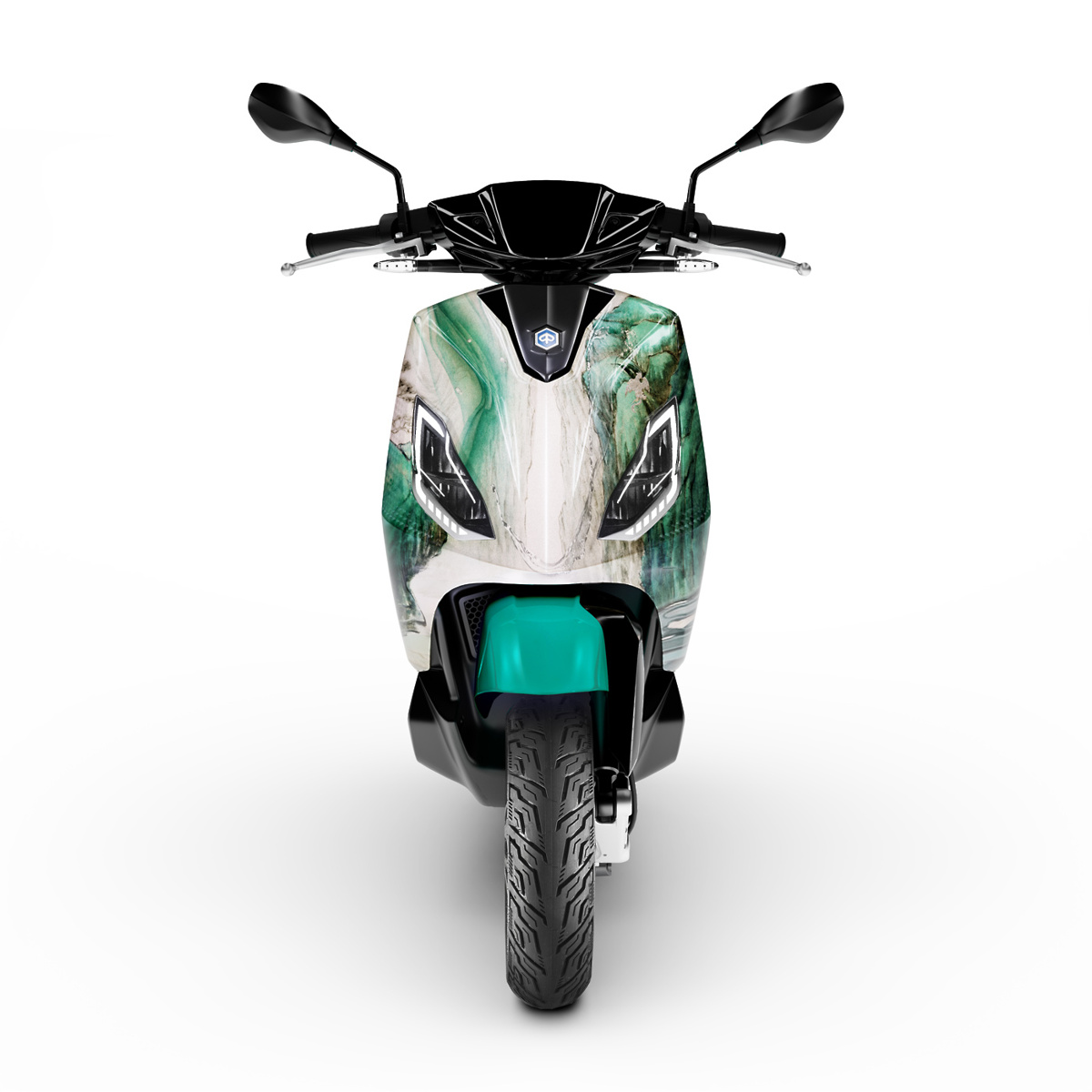 Posebna izdaja združuje tehnologijo in trajnost Piaggia 1 s sodobnim, večdimenzionalnim slogom Feng Chen Wang. Rezultat te fuzije odličnosti je eksperimentalni, presenetljiv in inovativen skuter. Popolnoma edinstven videz v svoji kategoriji, je priložnost brez primere za vožnjo po mestu z izvirnim umetniškim delom brez emisij.