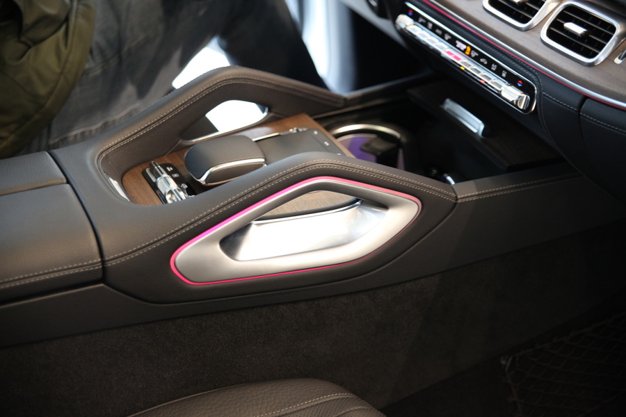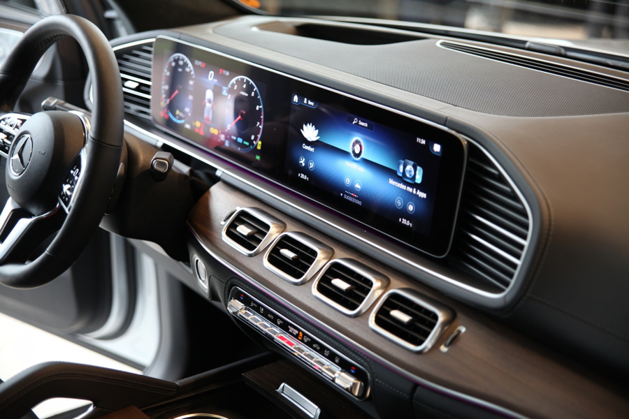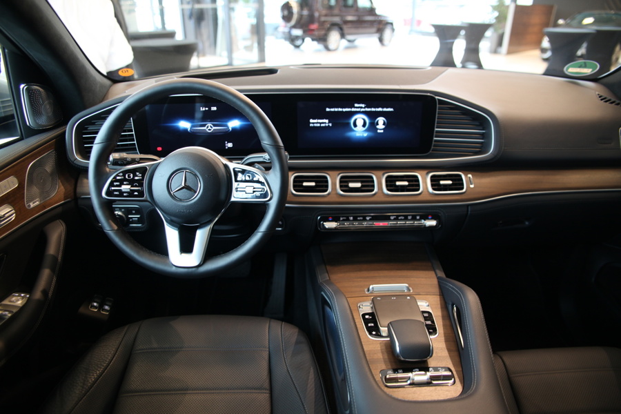 GLE je opremljen z najnovejšo generacijo multimedijskega sistema MBUX. Izboljšave v primerjavi z razredom A, vključujejo dva velika serijsko vgrajena 12,3-palčna/31,2-centimetrska zaslona. Opcijski asistent za notranjost MBUX omogoča tudi intuitivno, naravno delovanje različnih komfortnih funkcij in funkcij MBUX s prepoznavanjem kretenj. Kamera na konzoli na stropu zaznava premike voznikovih in sovoznikovih dlani in rok. Ko se dlan približa zaslonu na dotik ali polju, občutljivemu na dotik, v sredinski konzoli, se medijski prikazovalnik spremeni in posamezni elementi se označijo. Sistem razloči voznikovo dlan od sovoznikove in tako ve, za čigav sedež mora na primer vklopiti masažno funkcijo.