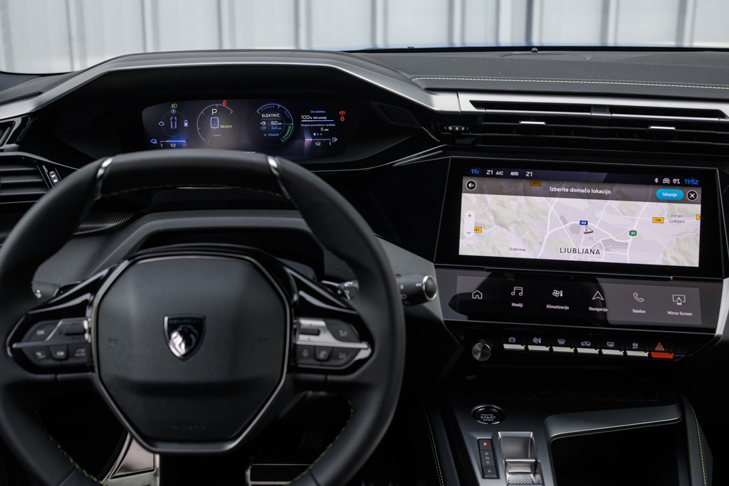 HYBRID 225 e-EAT8 / dvokolesni pogon / kombinacija motorja PureTech s 180 KM (132 kW) in električnega motorja z 81 kW v povezavi z menjalnikom e-EAT8 /