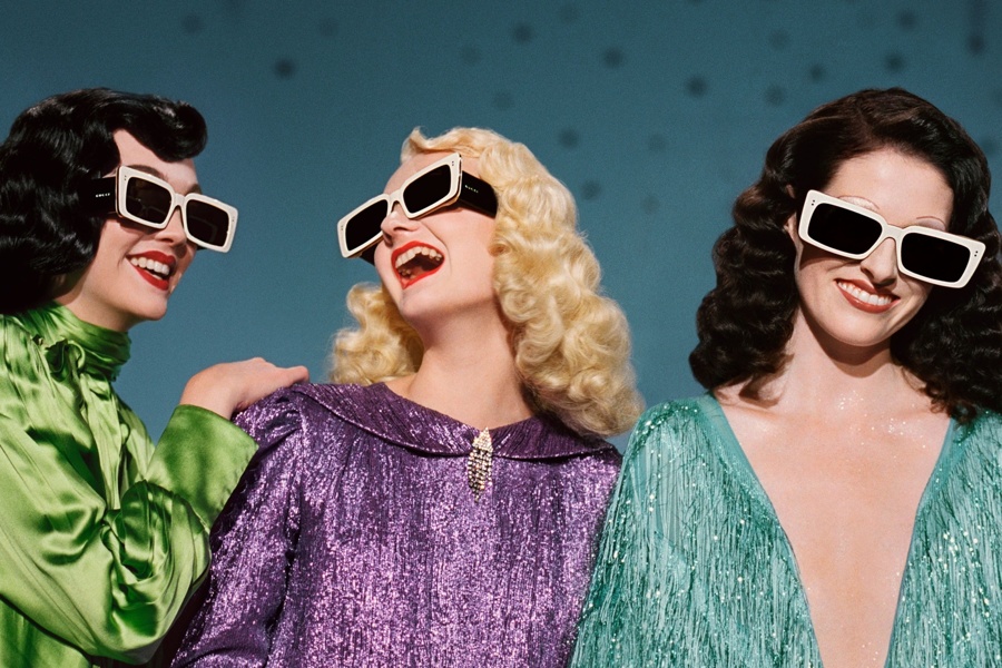 Za modne posebneže je že dalj časa največja inspiracija prav znamka Gucci in tudi tokrat je tako. Gre za nenavadne kombinacije barv, vzorcev in stilov, ki še najbolj spominjajo na prehod iz sedemdesetih v divja osemdeseta leta. Pri sončnih očalih je to opazno predvsem v obliki okvirjev, ki so bodisi zelo široki, robustni in opazni ali pa jih praktično ni. Lahko so tudi vzorčasti ali pa posuti s kamni in drugimi dekoracijskimi elementi.