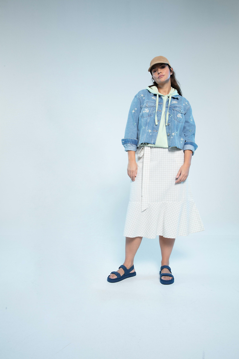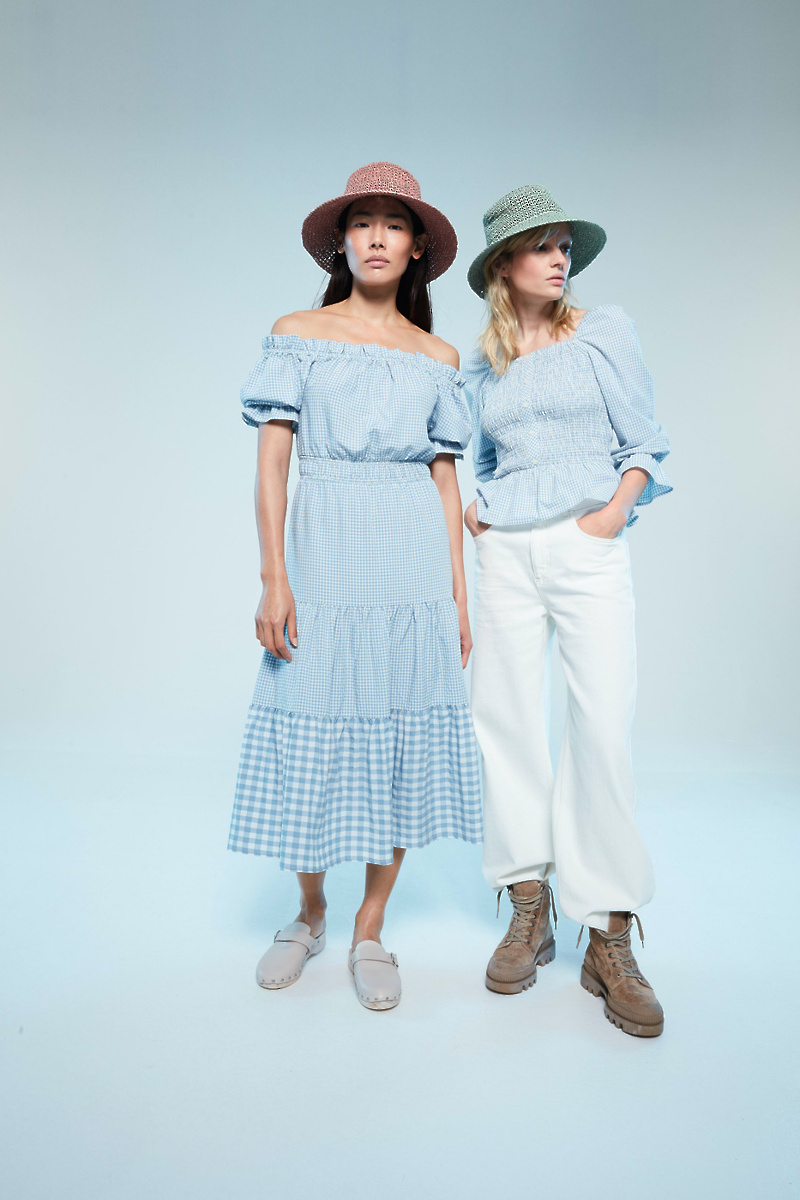 Vzorci vichy in številni cvetlični potiski puščajo močan vtis, čeprav je barvna paleta umirjena. Krep materiali, rebraste tkanine in kvačkani všitki so podpis nove kolekcije. Jeans bež barve iz materiala Cradle to Cradle Certified® je globalno prepoznani element za trajnostne proizvode, izdelane s podporo krožnega gospodarstva, kar je prav tako del nove kolekcije. Jeans kosi so navdihnjeni z delovnimi oblačili, kot so jakne, kombinezoni in podložene kavbojke. Spran jeans daje kolekciji retro videz. Barva je svetlejša, kroji pa širši, bolj nežni in sproščeni. Dodatki, kot so klobuki in pletene torbe, so pika na i popolnemu poletnemu videzu.