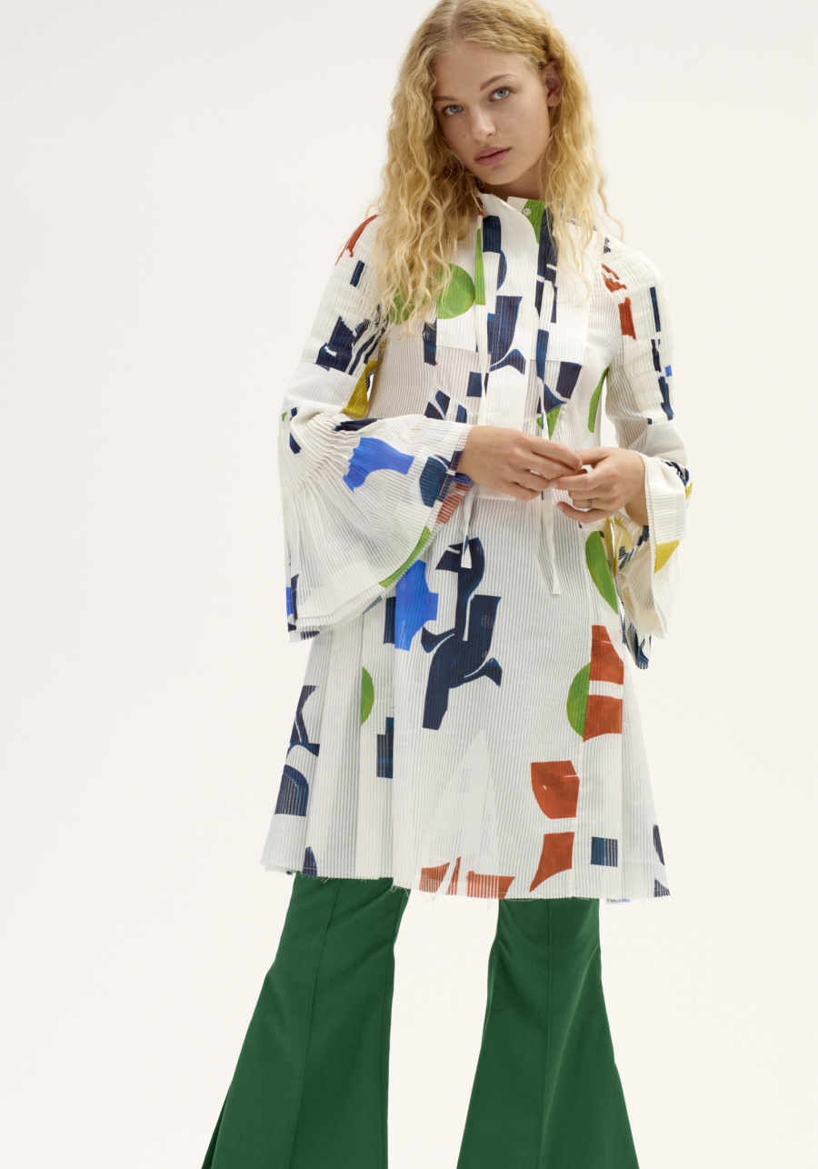 Tako ženska kot tudi moška oblačila so v znamenju jasnih silhuet s sproščenim pridihom in imajo kanček vpliva delavskih oblačil. Pri ženskih oblačilih jepoudarek na potiskih od glave do pet in živahnih barvah v obliki lahkotnih dolgih oblek, tunik, nošenih preko hlač, utilitarističnega krojenja in čudovitih pletenin. Medtem ko je pri moških oblačilih poudarek na posodobitvi klasičnih kosov, kot je krojena jakna, srajca in pulover z okroglim ovratnikom z zanimivimi kroji, barvami in luksuznimi dodatki.