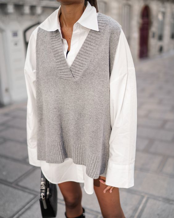 V enem stajlingu skombinirajte vse svoje najbolj trendne kose. To so lahko škornji z debelim podplatom, kavbojke ravnega kroja, prevelika bela srajca, pleten brezrokavnik in majhna torbica za čez ramo.