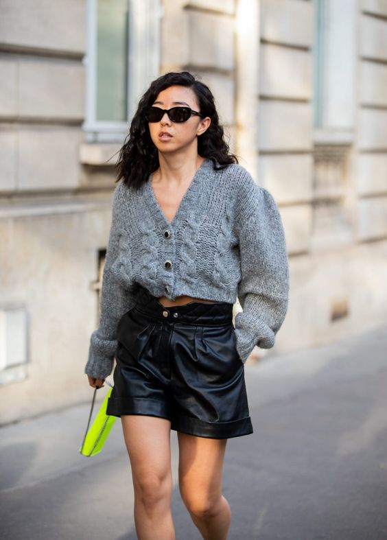 Ta trenutek so nadvse modne kratke jope, ki jih vplivnice nosijo brez spodnjih majic tako, da iz njih obvezno pogleduje vsaj ena gola rama. Če imate v omari daljšo jopo, jo skombinirajte z mat najlonkami in visokimi škornji.