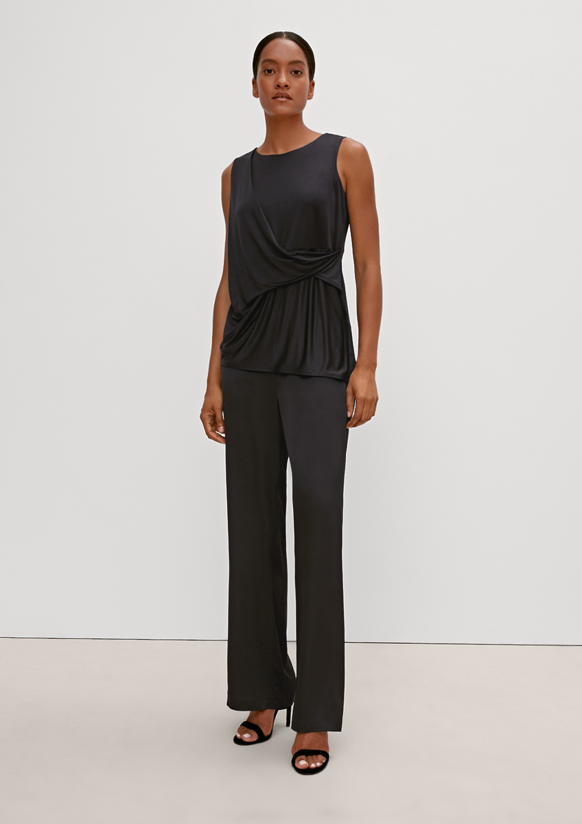Za jesenko kolekcijo modne znamke Comma je značilno kombiniranje različnih materialov in tekstur, kot sta na primer debelejša pletenina in saten. Preplet sijočih in mat materialov ustvarja zanimive kontraste.
