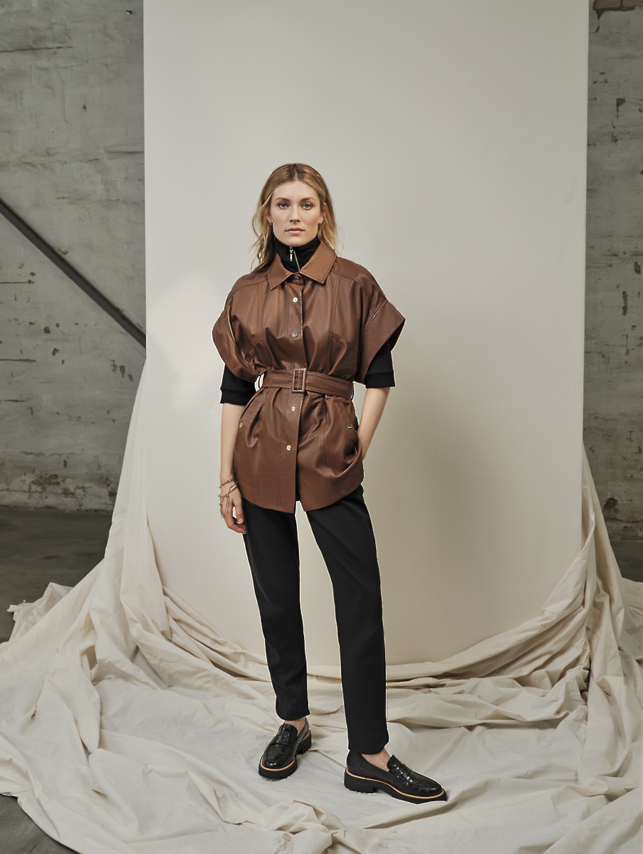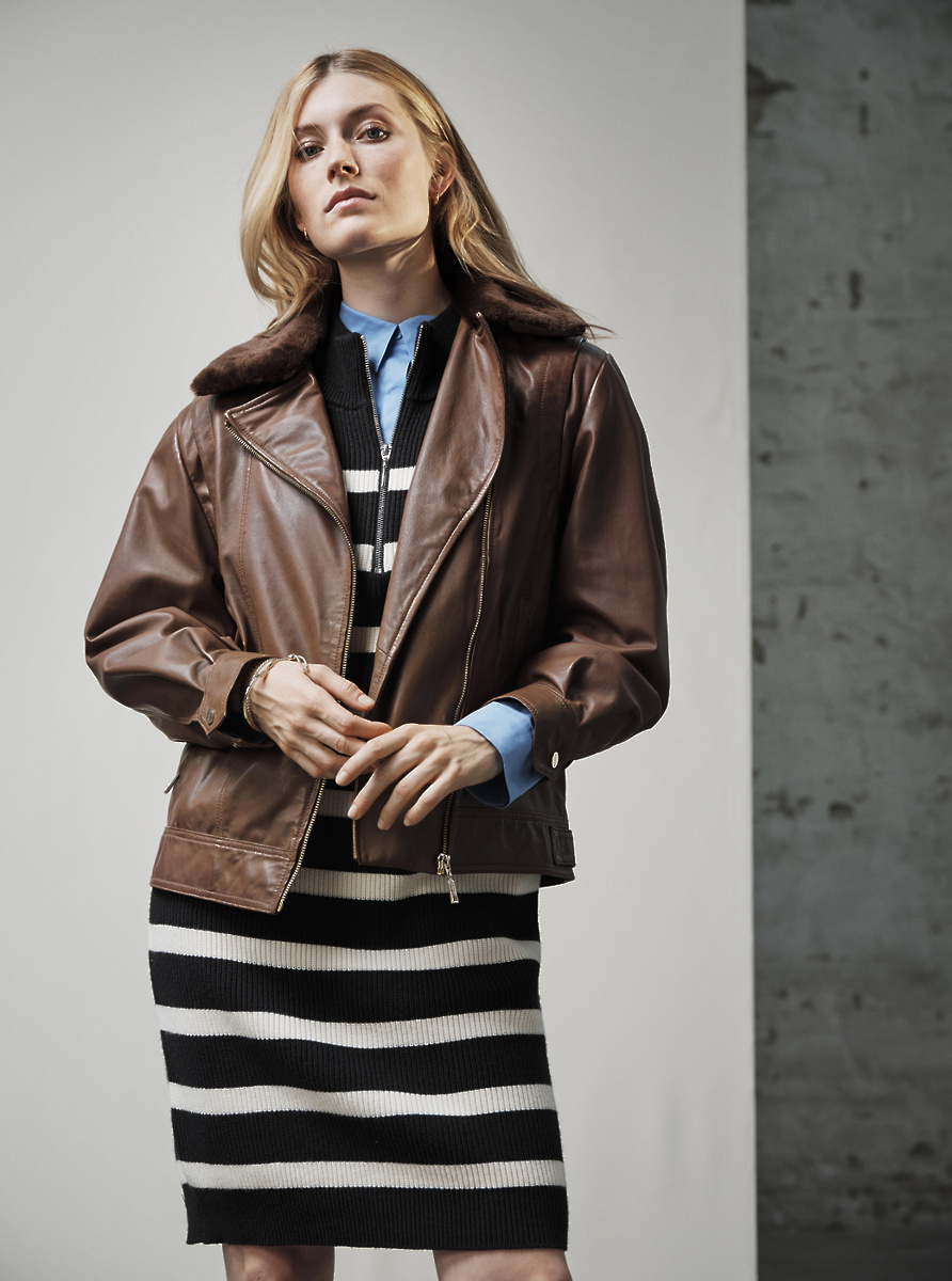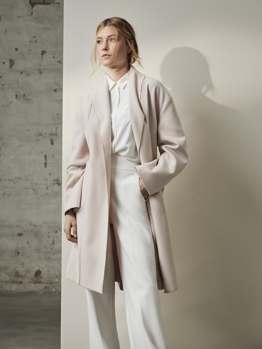 Oči pritegnejo črte in sveži odtisi, kot tudi vrhunci barvne palete: tukaj poleg črne in bele prevladujeta dva različna odtenka modre in rjave. Nov urbani videz zaokrožujejo inovativni oblike vrhnjih oblačil, ki se prelivajo. Izjemni kontrasti izhajajo iz mešanice naravnih materialov, kot je usnje z umetnim usnjem in mehkimi svetlečimi premazi.