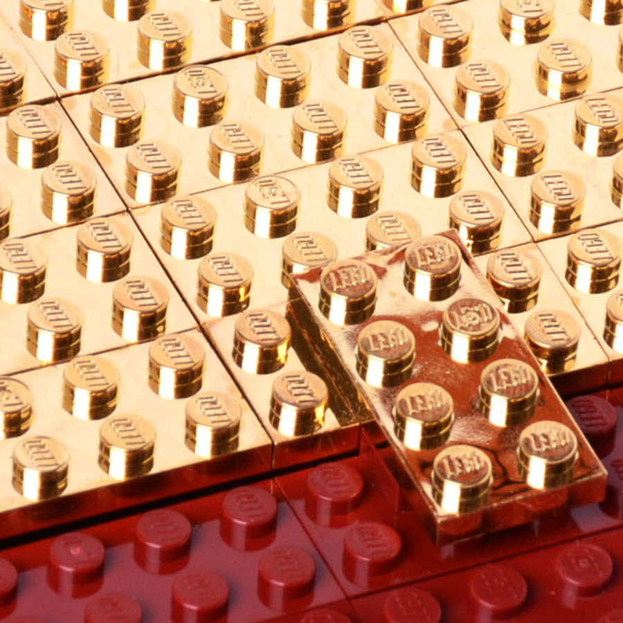 Že lani predstavljena linija torbic, sestavljenih iz LEGO kock, je sedaj dobila svojo modno nadgradnjo, in to v obliki kar 24 karatnega zlata! Sadovi večmesečnega dela prikazujejo predvsem izjemno predanost podrobnostim priprave torbic. Pozlačene LEGO kocke so namreč izdelovali kar v treh fazah in v treh različnih tovarnah, rezultat dela pa se ponaša predvsem z izjemno fleksibilnostjo LEGO kock in nosljivostjo torbic kot tudi nakita, v katerih prednjačijo predvsem barvite zapestnice in uhani. Več informacij na uradni Etsy strani.