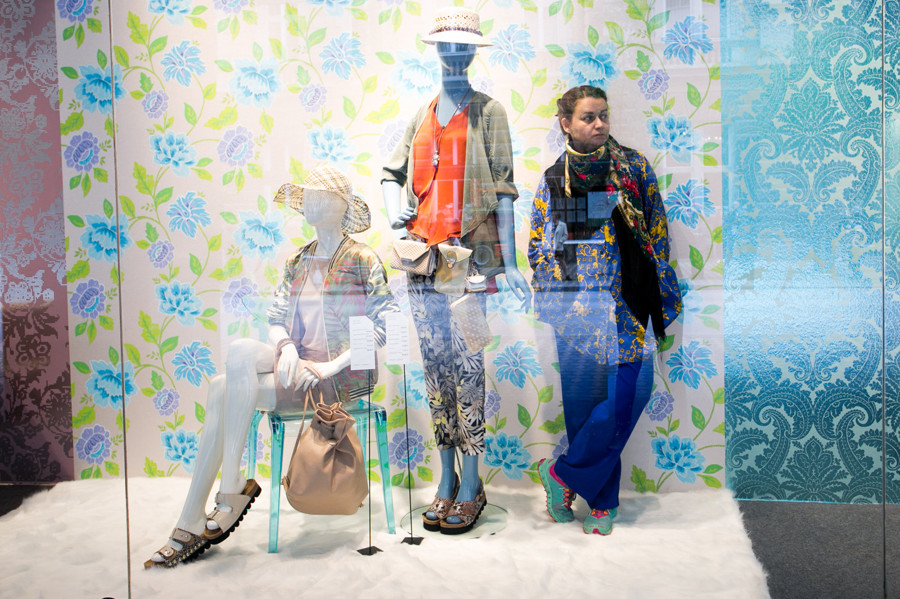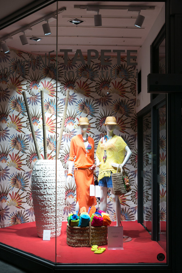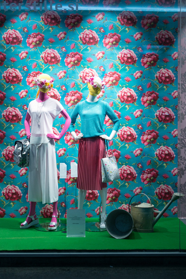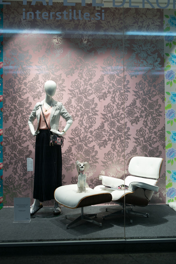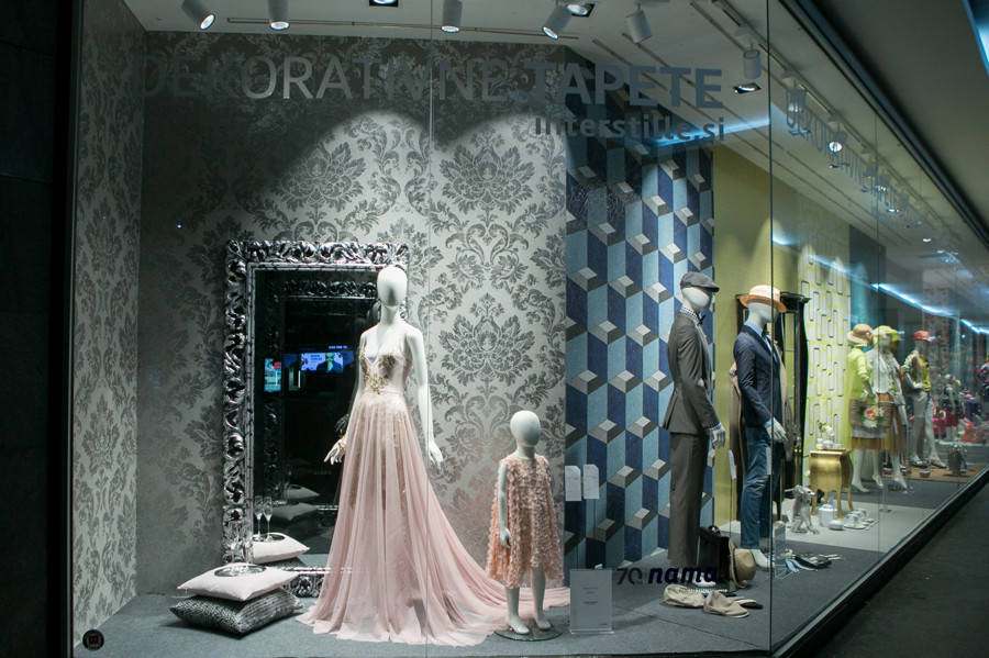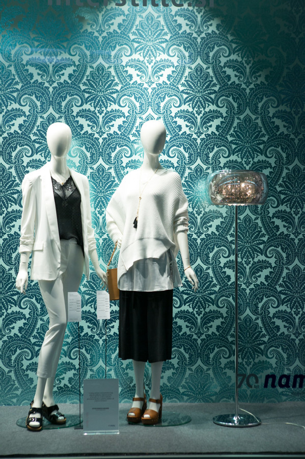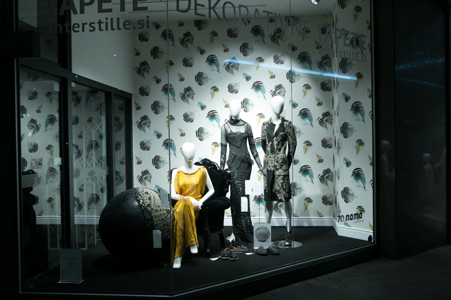 Ljubljanska veleblagovnica je k oblikovanju svojih izložb skupaj s hišno vodjo aranžiranja Aljo Dermastja prvič povabila kar devet modnih strokovnjakov. Iz oblačil in dodatkov globalnih ter domačih blagovnih znamk so ustvarili vsak svojo modno zgodbo. Družbo jim delajo lepo oblikovani izdelki, stajlingi pa med seboj ločujejo sodobne dekorativne tapete Interstille, ki rišejo zanimive kulise in popestrijo vsak prostor.