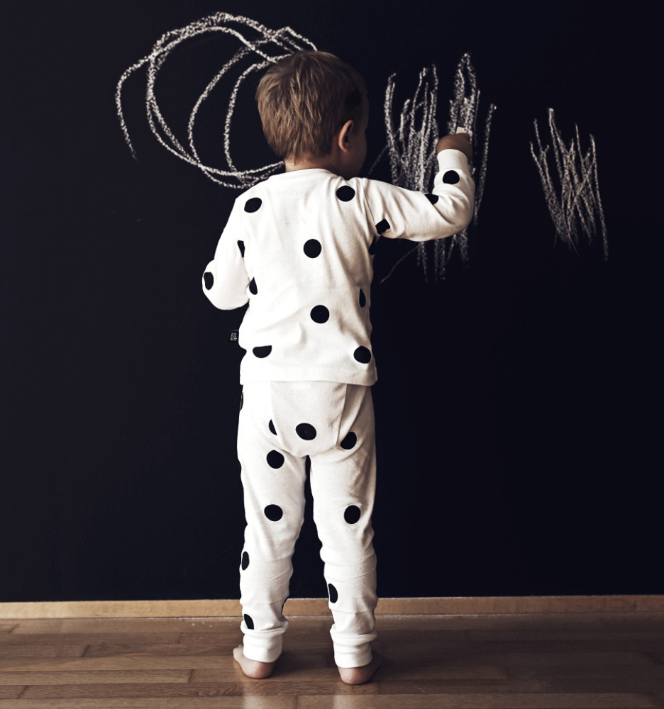 Črna barva je že nekaj časa je prisotna pri otroških trendovskih oblačilih, igračah in posteljnini, še posebno ko želimo opremiti svoje minimalistično belo črno stanovanje.