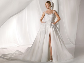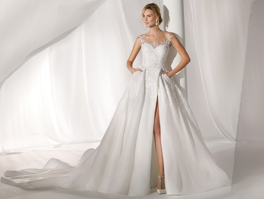 Zakorakajte na zakonsko pot samozavestno in osvobajajoče. Zapeljivi razporki niso le na videz privlačni, temveč predvsem praktični. Odveč so skrbi, če je obleka predolga, da bomo pohodili sami sebe ali se kako drugače zapletli. Čudovita izbira za neveste z lepimi nogami in skrbno izbranimi čevlji.