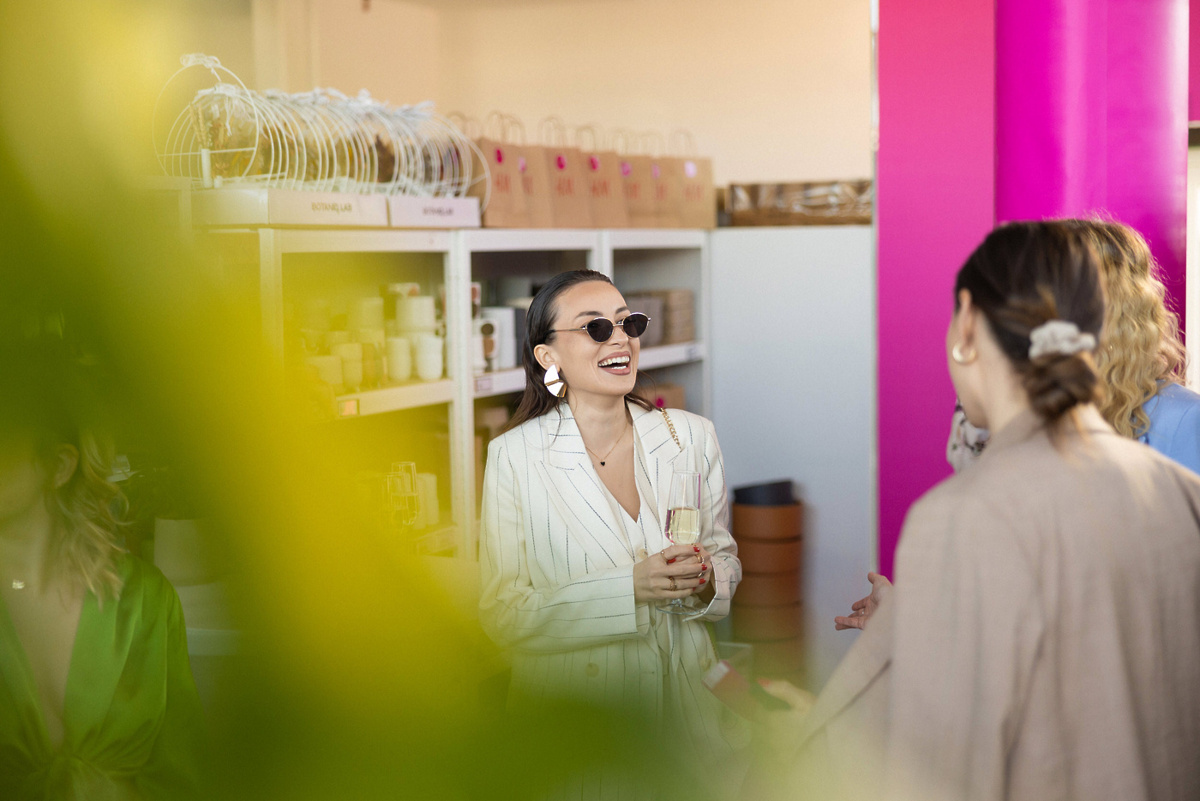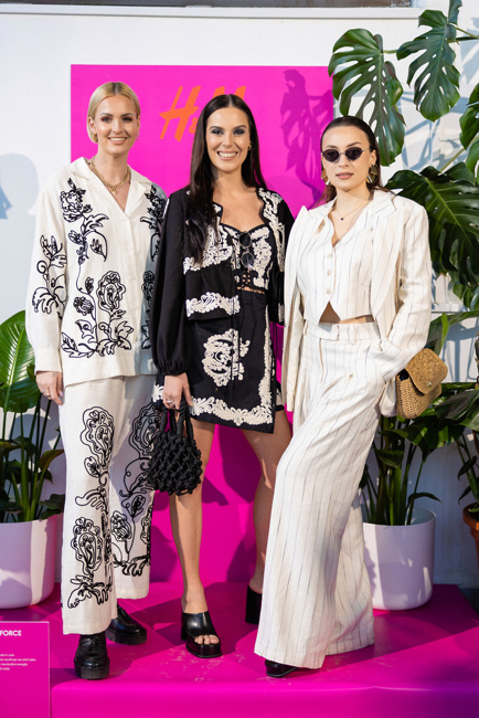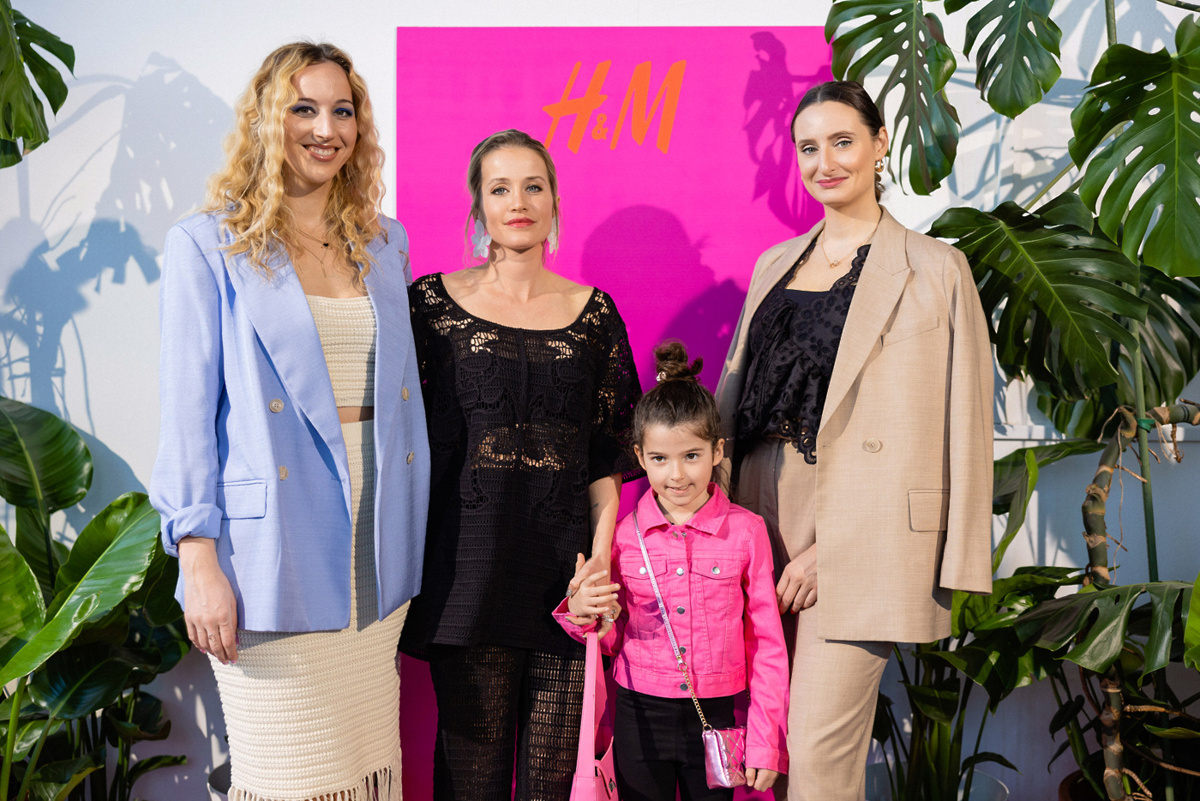 Valeria Četić, predstavnica H&M Slovenija, vplivnica Nina Grilc s hčerko in Marie Kren, H&M Fashion PR