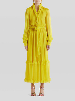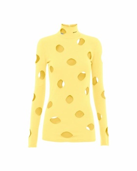 Pri znamki Etro so trendno barvo predstavili kot odlično opcijo za na plažo ali v mesto, kombinirali pa so jo z belo srajco in barvnimi retro vzorci. Pri Pradi so sončno rumeno stilirali s še enim velikim trendom - pleteninami z odprtinami, skozi katere rumena pride še bolj do izraza.