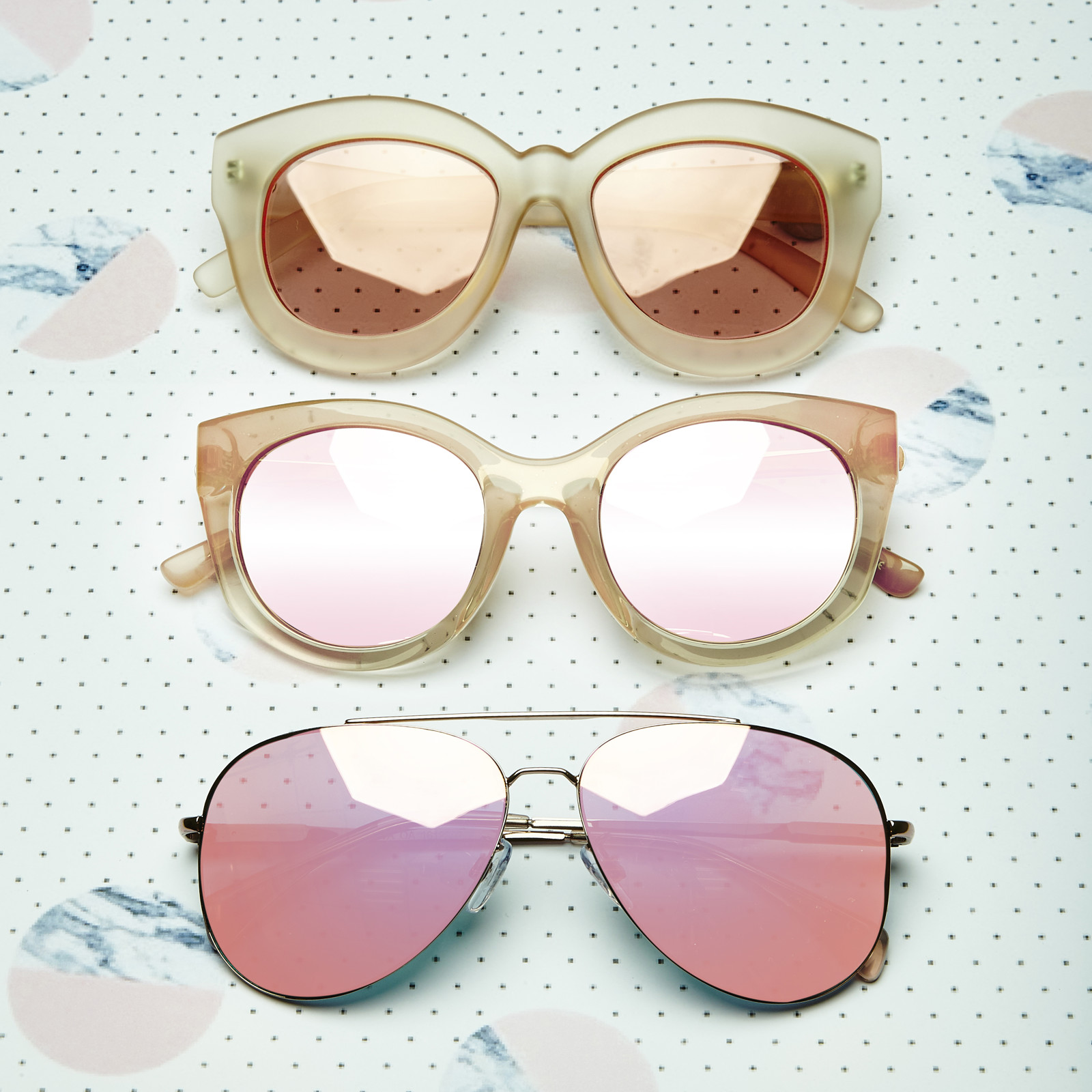 Tiste, ki že sanjamo o poletnem soncu in vročem pesku med prsti, bomo zagotovo navdušene nad trendi sončnih očal, ki jih napoveduje Seafolly. S plaže bomo spet zrle z mačjimi pogledi, ki so tokrat v nežnih odtenkih pastelov. Ko bo čas za koktajl, si bomo nadele očala v kombinaciji kovine in plastike, ki delujejo izjemno lahkotno. Sončni zahod pa lahko pričakamo v ikoničnem aviatorskem dizajnu, ki z rožnatimi stekli ustvari še posebej romantičen videz.