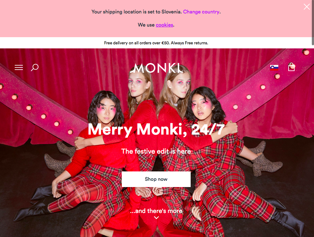 Monki je trendovska trgovina z normalno dostopnimi cenami, na kateri lahko najdemo različne stile, primerna pa je tudi za vse tiste, ki sicer ne sledijo vsakodnevno spreminjajočim se trendom. Poštnina v Slovenijo je 7 evrov, če naročimo nad 50 evri je poštnina zastonj.