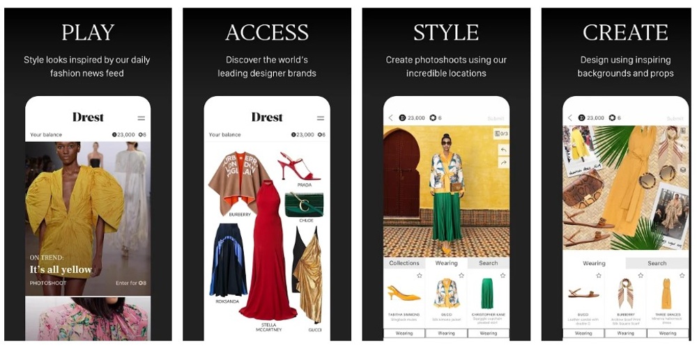 S pomočjo aplikacije Drest, ki je nekakšna video igrica za odrasle modne osveščence, lahko stilsko oblečemo poljubnega človeškega avatarja. To ni navadna igrica, saj se lahko poigramo s kosi znanih luksuznih modnih blagovnih znamk, kot so Burberry, Stella McCartney, Gucci, Bottega Veneta. Izbrane kose pa je možni tudi kupiti. Če nam to ni dosegljivo, pa si lahko našo sanjsko garderobo ustvarimo v virtualni resničnosti.