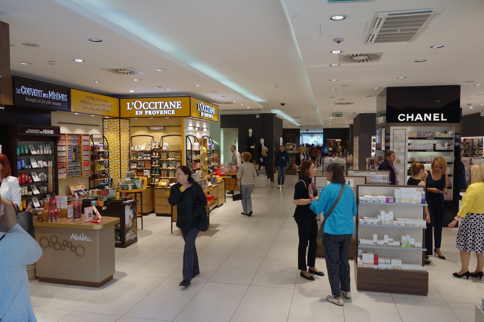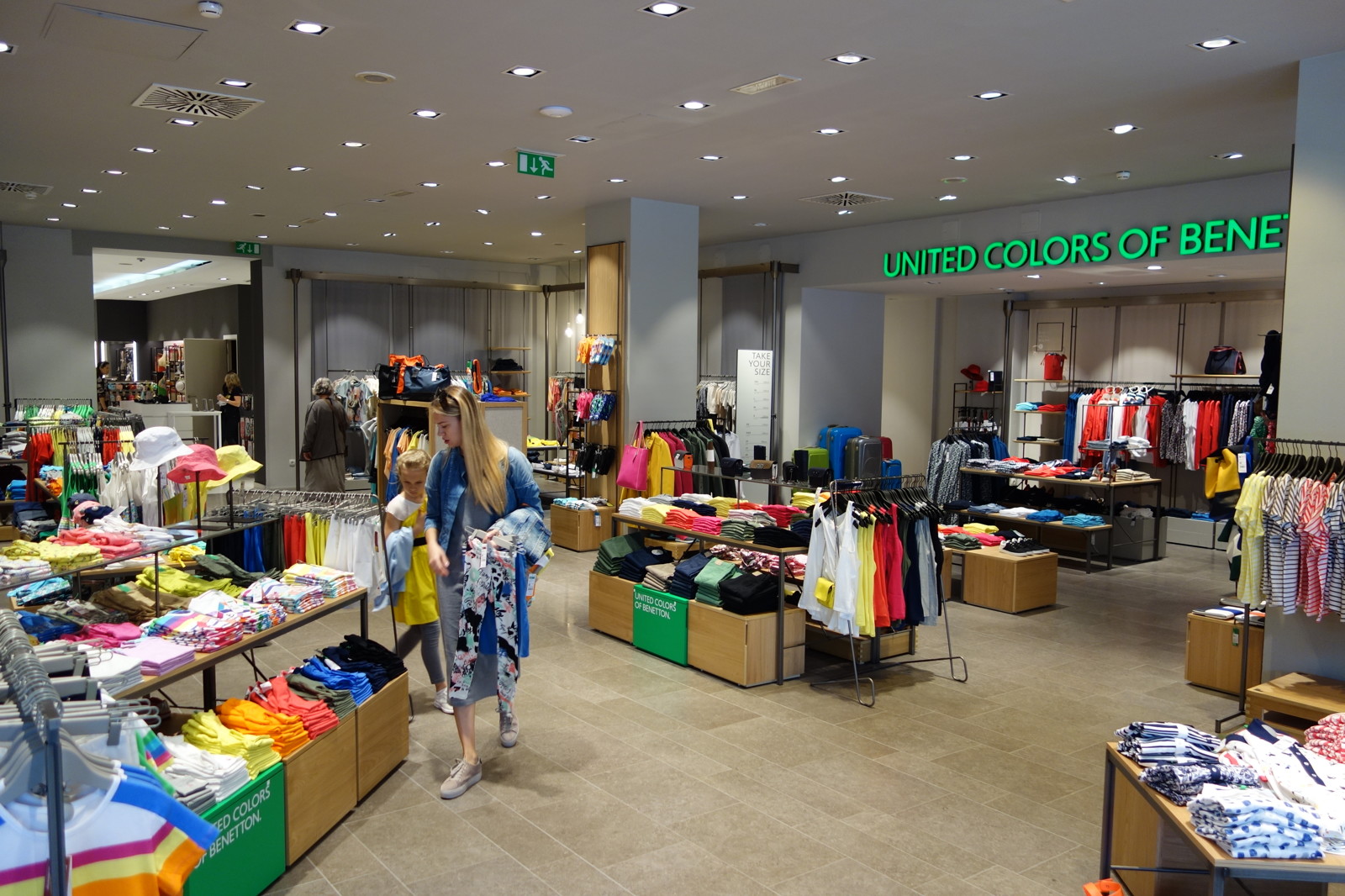 Pritličje, ki so ga razširili pod arkade, nam na dodatnih 200 kvadratnih metrih nakupovalnih površin ponuja oblačila (Benetton), modne dodatke in kozmetiko.