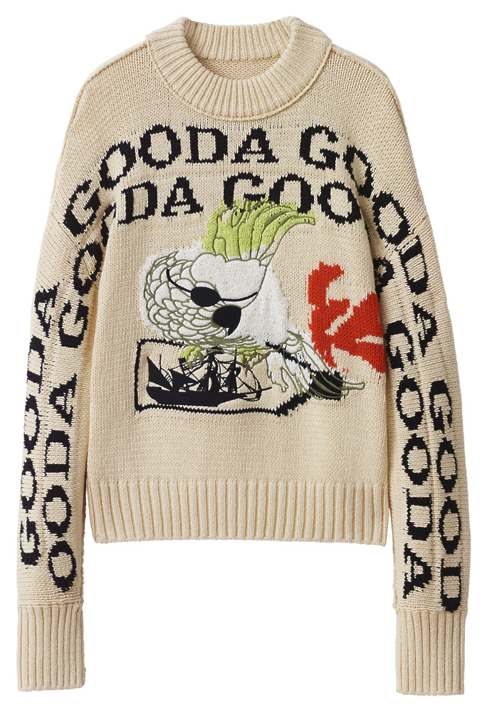 Krilo z resicami, ki spominja na hobotnico, kratka pisana usnjena jakna pa je prava morska klasika. Poleg tega so kosom dodali še gumbe različnih oblik in ostale dodatke, ki celoten videz naredijo, kot da so ga ravno potegnili iz oceana.