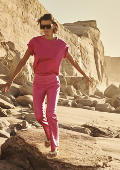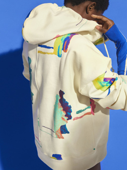 Barvna paleta je sestavljena iz svetlo roza in kobaltno modre barve, z izrazitimi poudarki v fluorestenčni zeleni barvi, v zanimivem nasprotju z nežnimi odtenki kremno rumene barve.