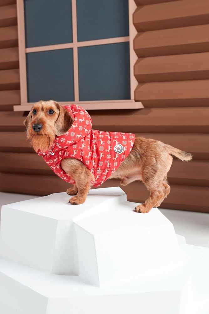 Ta kolekcija je kot nalašč, da se naš pes z zimo spopade oblečen v šik oblačilo, obenem pa je lahko celo oblečen podobno kot mi. Najlonski brezrokavnik je na voljo v rumeni, rožnati in modri barvi, plašč iz vinila je prozoren in vodoodporen, ovratnica in povodec pa sta na voljo v barvah Monclerja. Najbolje pa je, da bodo plašči na voljo kar v šestih različnih številkah.