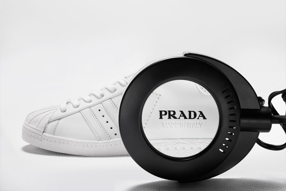 Vse se je začelo pred dobrom mesecem, ko je luksuzna blagovna znamka Prada na svojem Instagram profilu objavila fotografijo, ki je namigovala na skupno sodelovanje dveh velikih modnih imen. Skrivnost je razkrita, saj je sodelovanje dveh priznanih znamk obrodilo skupno kolekcijo v kateri najdemo kultni model superg Adidas Superstar,"Prada Superstar", in športno torbo "Prada Bowling bag for adidas".