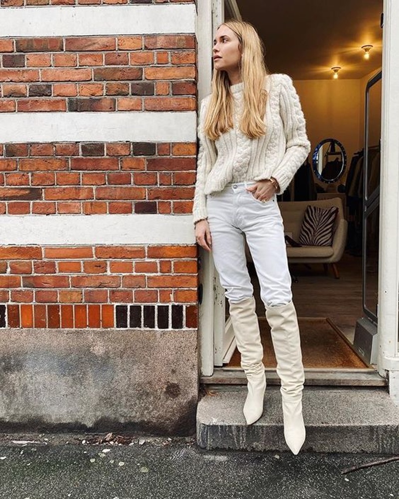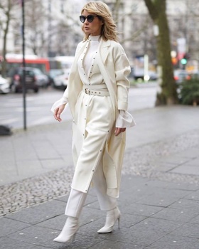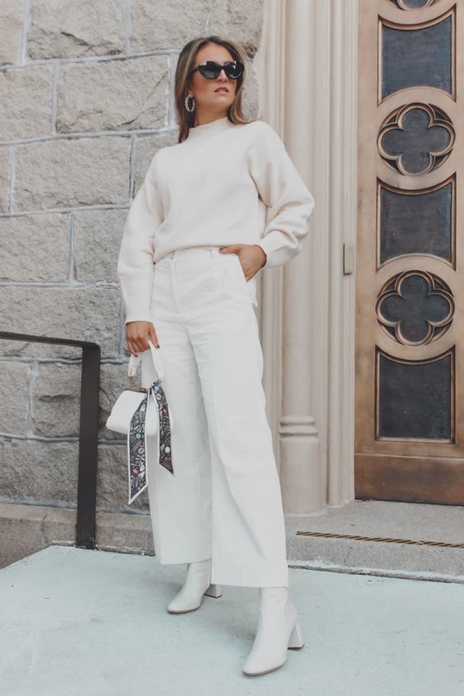 Če nismo dovolj pogumni za celoten outfit v beli barvi, si privoščimo rokavice, šal ali krilo v tej sveži, čisti barvi. Malo bolj pogumni pa se lahko odločimo za bele čevlje, gležnarje ali škornje.