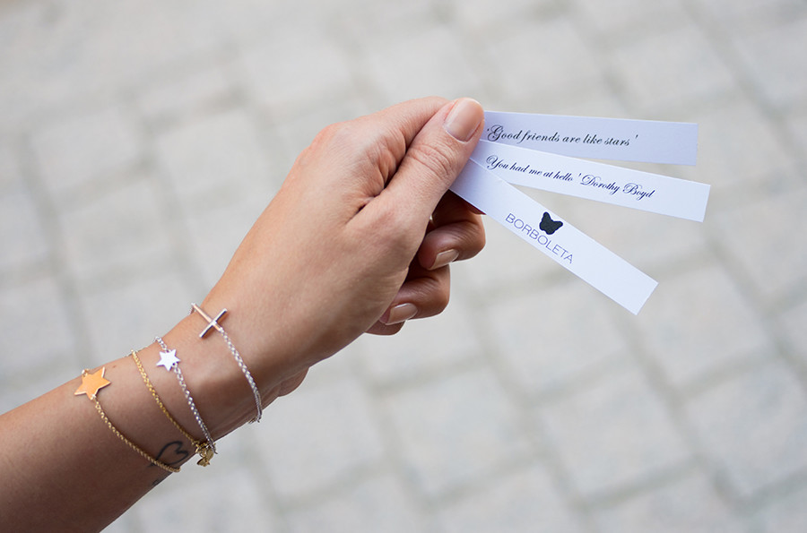 Ponudbo Borbolete sestavljajo kolekcije Classic, Candy, Silver Edition, Love Letters in Feather and Wings. K vsaki zapestnici je priložen citat iz filma, umetnosti ali literature, ki se je dotaknil naših življenj. Ta poteza le še utrjuje poslanstvo znamke Borboleta, ki jo vodi ideja, da je vsak dan poseben, če le narediš nekaj posebnega zase in za svoje ljubljene. Dovolite si vstopiti v čudovit svet Borbolete, kjer je prijateljstvo večno.