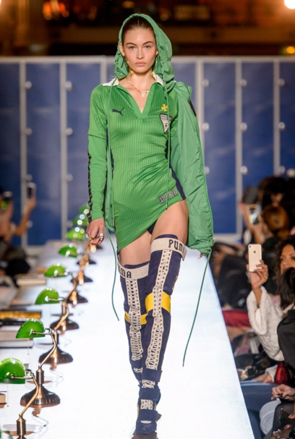 Sodelovanje znanih obrazov iz sveta zabave in športnih blagovnih znamk je danes vsesplošen pojav. Veliko znanih osebnosti iz šovbiznisa se lahko na trgu pohvali s svojim parfumom, kolekcijo oblačil ali vsaj modnim dodatkom. Tudi tokrat sta moč združili blagovna znamka športnih oblačil Puma in pop pevka Rihanna, ki je ponosni ambasador in gostujoči oblikovalec omenjene športne blagovne znamke, že drugo leto. Rihanna je na modni pisti predstavila značilno provokativno športno kolekcijo Fenty, ki pa je ne bomo nosili v telovadnici ali ob športnih aktivnostih ampak bomo z oblačili opaženi v nočnem klubu, baru ali divji zabavi. Prevelike bomber jakne, kratke športne majice, obleke z razporki, kratka krila in obvezne dokolenke z logotipom so obvezna garderoba, ko se bomo ob koncu tedna pripravljali na najbolj noro zabavo, v stilu Rihanne, seveda.