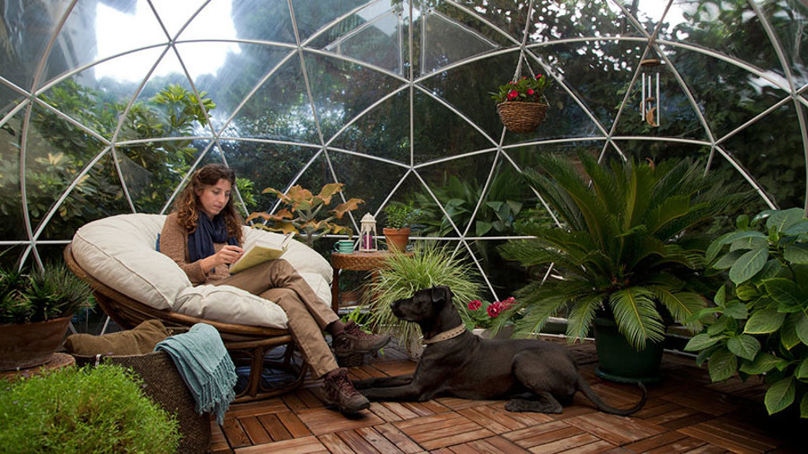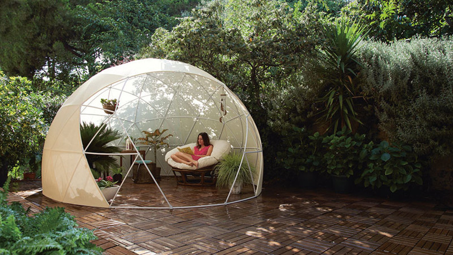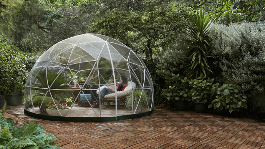 Večnamenski Garden Igloo, ki ga poleg praktičnosti odlikuje tudi čudovit estetski dizajn, je dovolj velik, da lahko v njem stojimo, namenjen pa je prav vsem vremenskim pogojem, saj nas, če ga popolnoma zapremo, lahko ščiti tako pred dežjem, vetrom ali pa zgolj pred neprijetnimi piki žuželk. Oblikovan je namreč tako, da ga z lahkoto postavimo in zamenjamo tri različne prevleke, ki jih lahko prilagajamo glede na naše potrebe, in preprosto pospravimo, ko ga ne potrebujemo več. Tako predstavlja preprost način dodajanja vodoodpornega in nerjavečega zaprtega prostora na naš domači vrt, saj lahko zaradi zaščite pred dežjem z lahkoto vanj vključimo tudi pohištvo.