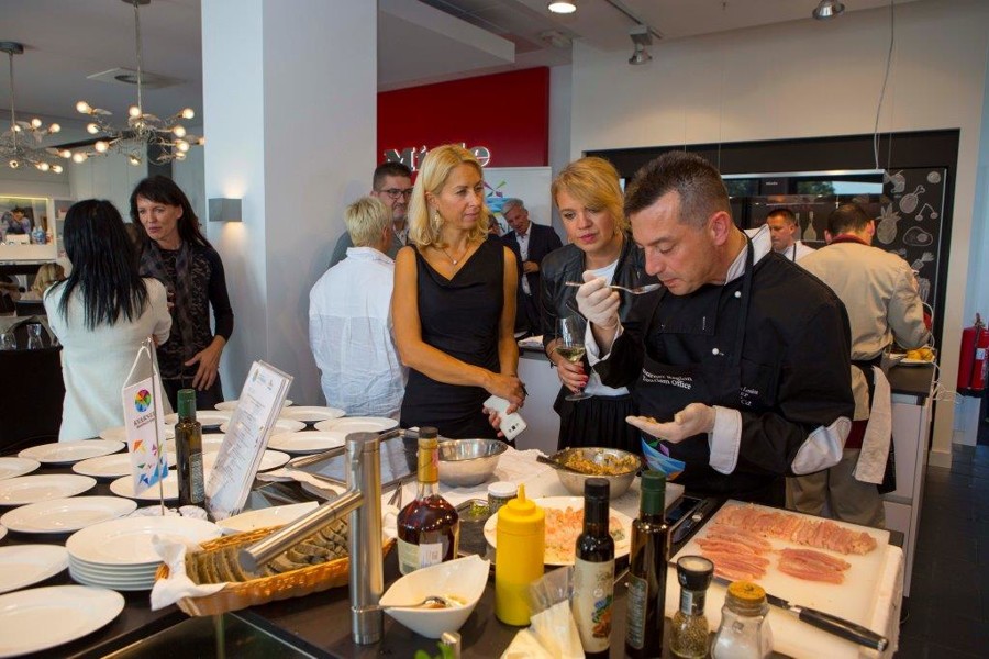 V prijetnem vzdušju demonstracijske kuhinje Miele Experience Centra v Ljubljani so vrhunskost kvarnerske kulinarike s kuhanjem v živo prikazali chef Dražen Lesica in chef Igor Eržen, kuharja priznane restavracije Rivica iz mesta Njivice na otoku Krku, ki je prejemnica znaka kakovosti Kvarner Gourmet, in chef Dalibor Perinčić iz restavracije in konobe Gospoja iz Vrbnika na Krku, ki je s seboj prinesel tudi vina vinske gleti Gospoja kot odlično spremljavo jedem.