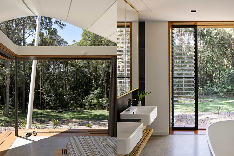 Posebnost inovativnega domovanja, ki ga lahko najdemo blizu avstralskega mesta Brisbane, je poleg njegove oblike tudi prilagajanje letnim časom. Tako nas pozimi kot običajne hiše varuje pred mrazom, poleti pa lahko zidove in streho odstranimo ter se tako kot v šotoru povežemo z naravo.