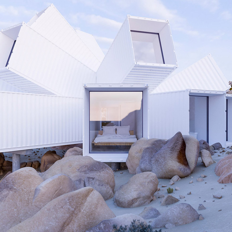 Za nastanek nenavadne rezidence Joshua Tree so zaslužni arhitekti iz londonskega studia Whitaker. Vsakega izmed ladijskih zabojnikov, ki tvorijo rezidenco, so usmerili tako, da ima prost razgled na okolico, hkrati pa stanovalcem omogoča veliko mero zasebnosti.