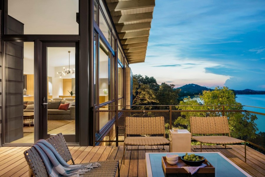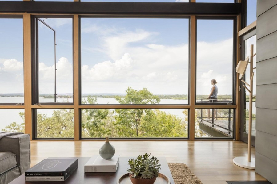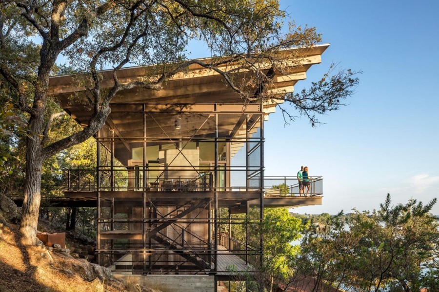 V kraju Marble Falls, v Texasu, lahko najdete čudovito hišo ob reki, zgrajeno kar iz treh nadstropij. Vertikalna razporeditev in gradnja prostorov upošteva lokalno topografijo, obenem pa to zagotavlja 180 stopinjski razgled na vrhu stavbe nad reko in okolišem. Osnovna ideja gradnje hiše je predvsem vključenost domovanja v samo rečno okolico – severni zid tako omogoča povsem neoviran razgled nad reko in lokalno hribovje. Ideja domovanja, ki vsekakor zagotavlja da vam vzame sapo in obenem vas napolni z novo energijo.