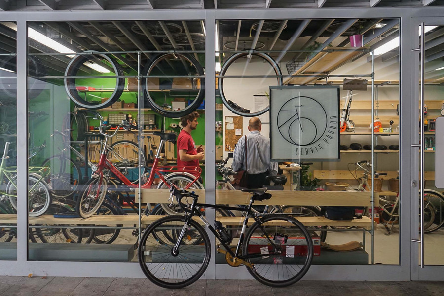 V Ljubljani na mestnih vpadnicah ne manjka kolesarskih servisov in trgovin s kolesarsko opremo in deli, je pa nadvse dragoceno imeti na poti v službo ali šolo 'pri roki' servis, kjer nam bodo med delovnim časom, če je seveda to mogoče, zamenjali počeno zračnico, popravili zavore, luč ali kaj drugega.