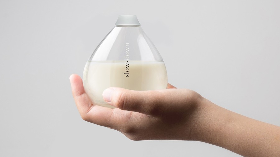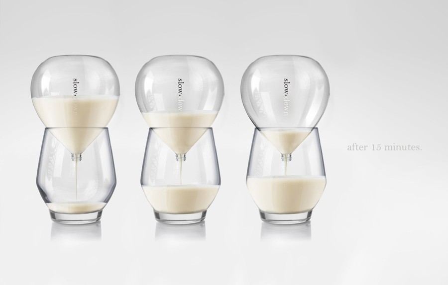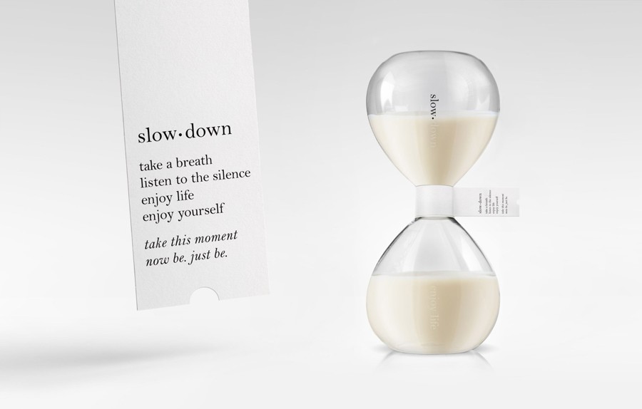 Danes le redkokdo živi umirjeno življenje, brez stresa, skrbi in hitenja. Vedno več časa posvečamo delu, dragocenega časa za najbližje pa nam vedno primanjkuje. Da bi se hitremu tempu življenja izognili in upočasnili vsakodnevni ritem so v oblikovalskem studiu "Opus B" predstavili nenavadno stekleničko s simboličnim imenom "Slow Down".