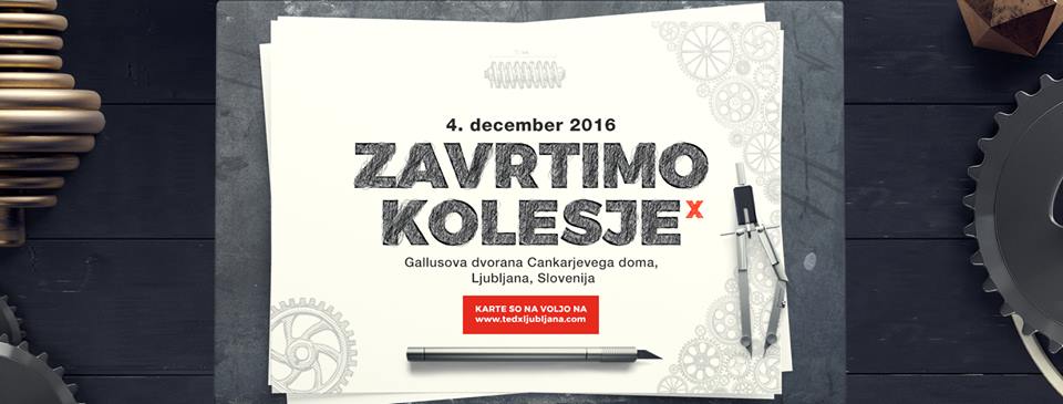 V nedeljo, 4.12. 2016, bo v Gallusovi dvorani Cankarjevega potekal največji TEDx dogodek v Sloveniji, TEDxLjubljana.