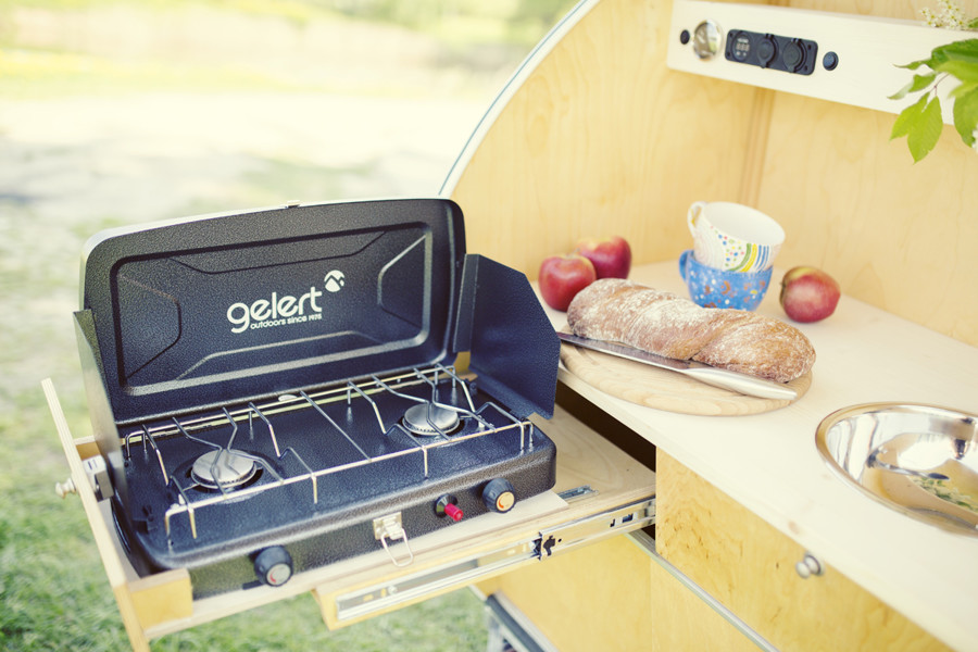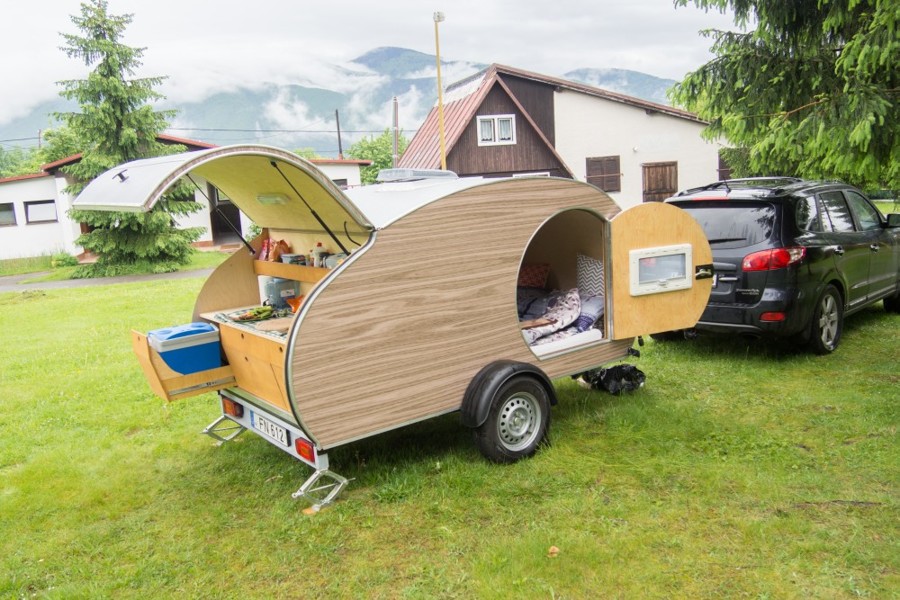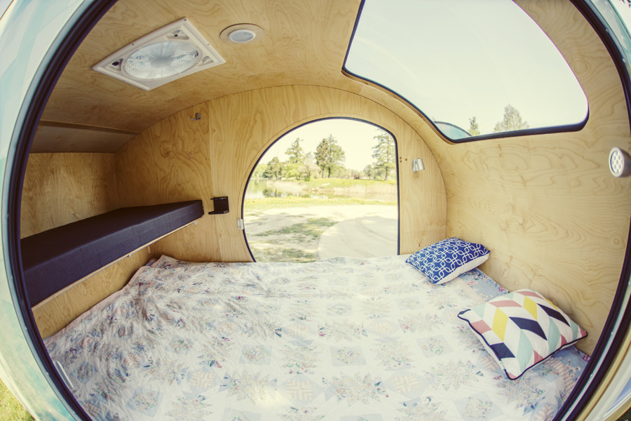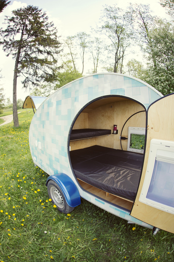 Majhne moderne prikolice Tinycamper premorejo poleg lepo oblikovane zunanjosti tudi spanje za dve osebi ali nastanitev ene majhne družine in so trenutno na voljo v dveh modelih: Mini in Tearcuby. Poleg velike zakonske postelje, ki zasede večino glavnega prostora lahko v njih najdemo tudi majhne mizice, ki jih lahko pretvorimo v divan, v zadnjem delu pa se skriva še nekaj prostora za shranjevanje kuhinjskih pripomočkov in shrambe. Za več informacij pa le zavijte tudi na njihovo spletno stran tinycamper.eu.