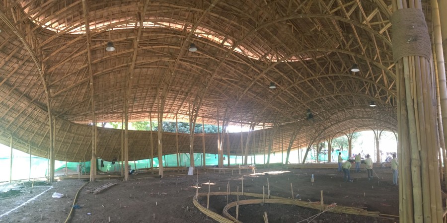 Veličastna športna dvorana, v celoti zgrajena iz bambusa