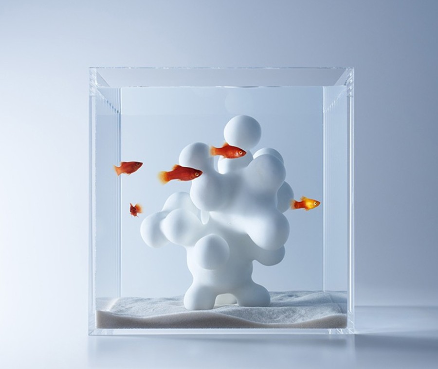 Med naborom domiselnih kreacij, lahko arhitekturne skulpture, ki vsaka na svoj način ločuje vodno okolje, ribam pa omogoča nove načine raziskovanja okolja. A najbolj izstopa prav poseben akvarij, pri katerem je Haruka Misawa izkoristil naraven pojav vzgona, ki nasprotuje pojavu gravitacije, zaradi katerega nastane v rezervoarju zračni mehurček, ki omogoča rast različnim vodnim rastlinam, ki hkrati delujejo tudi kot hrana za hišne ribe. Tako je ustvaril uravnoteženo akvarijsko okolje, ki je hkrati tudi lepo in v prostoru deluje pomirjevalno.
