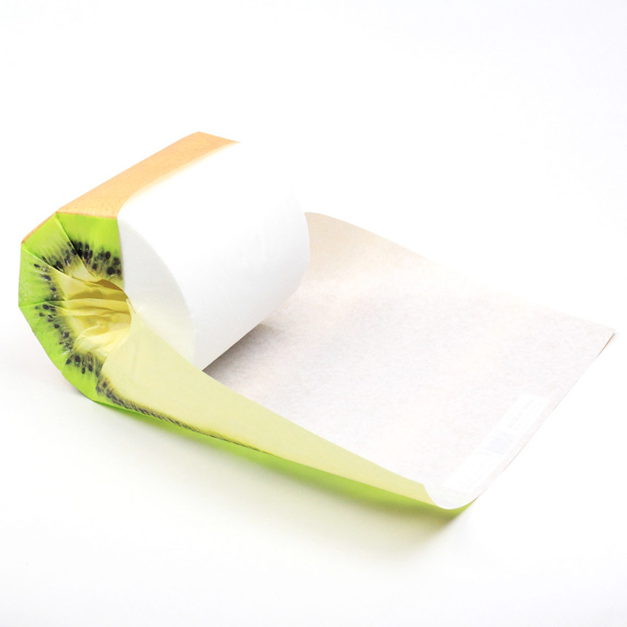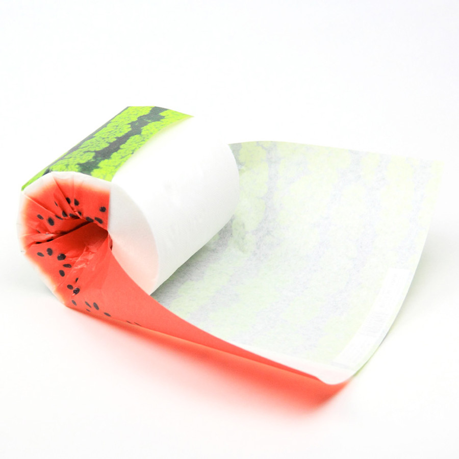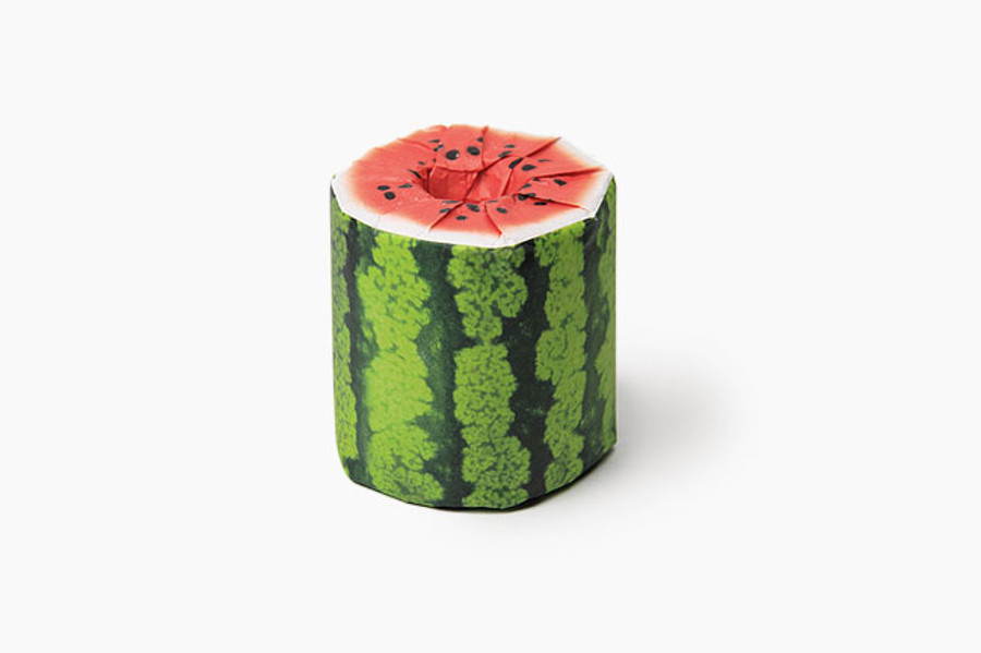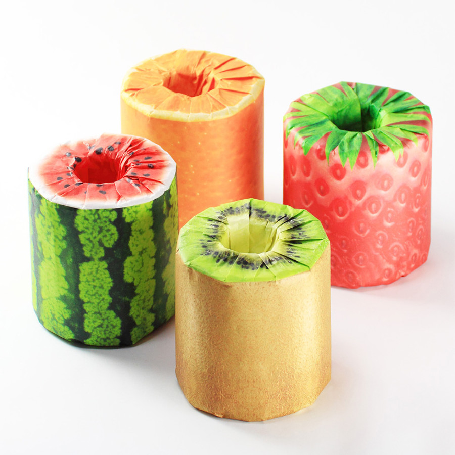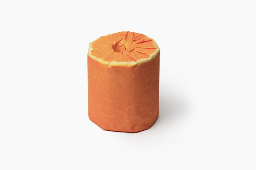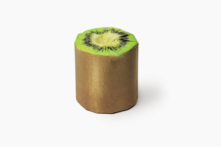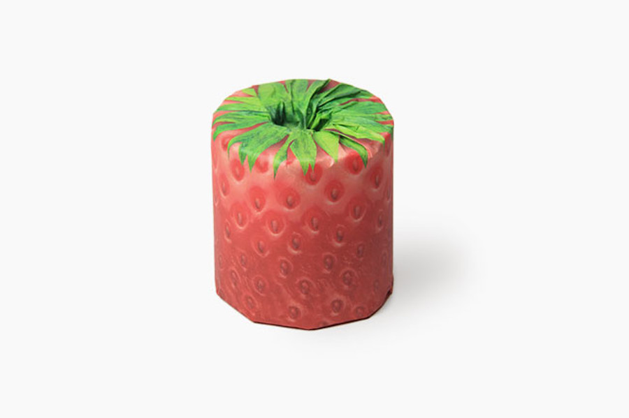 Japonski oblikovalec Kazuaki Kawahara je rolice toaletnega papirja ovil v dizajn, ki na novo zamišlja obliko WC papirja - v zabavno Juicy Fruit embalažo. Natisnjen papir je sicer pravokotne oblike, a ob zavijanju rolic prevzame značilno sadno obliko jagode, kivija pomaranče in lubenice.