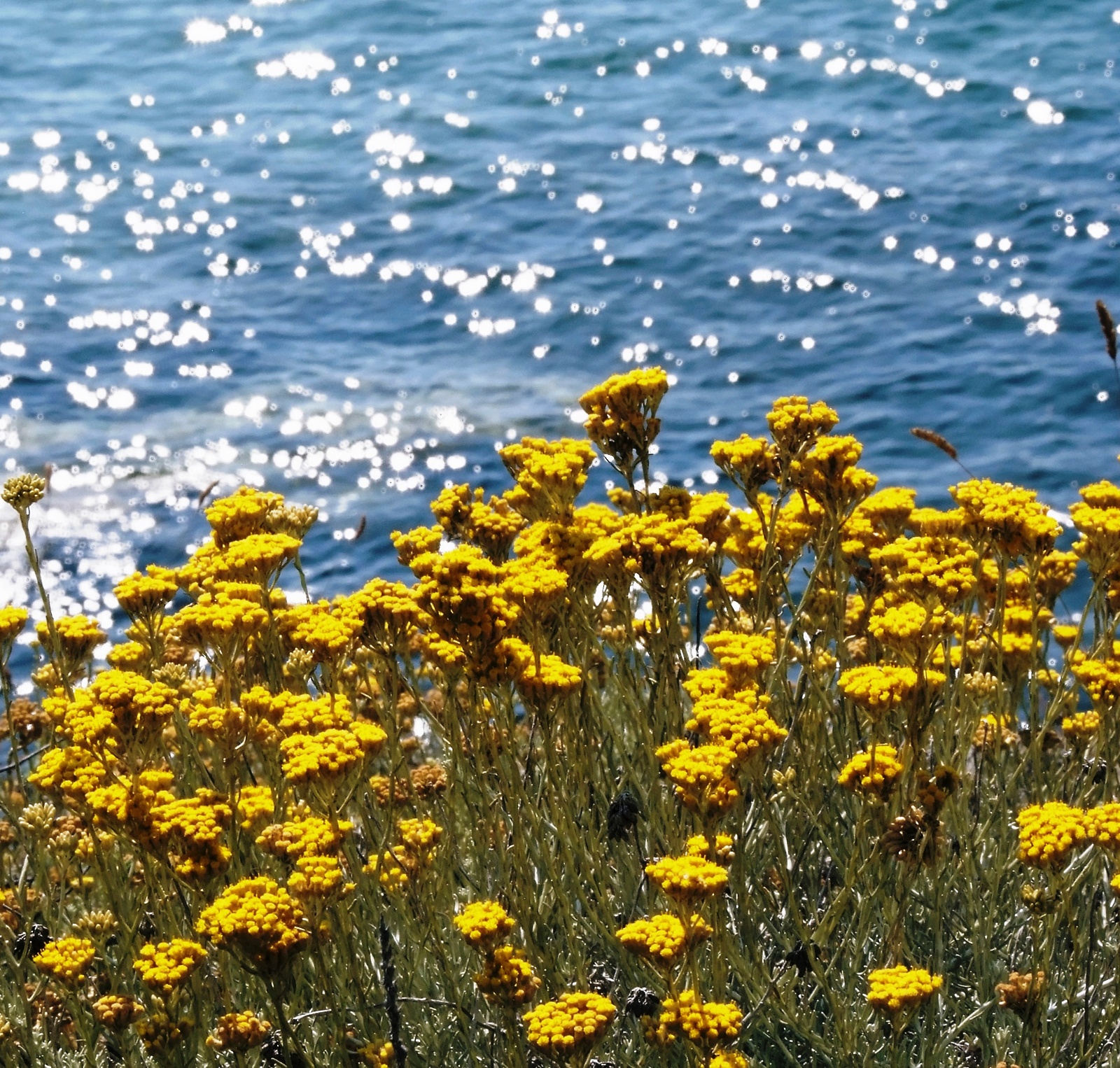 Zlata polja hribovite Korzike. Immortelle, suhocvetnica. Prav v tem času jo žanjejo. Divjo cvetlico, ki nikoli ne oveni. Tudi, ko jo odtrgamo, ne. Celi šopi se selijo v vaze, v interierjih zasije “sonce”, zrak opojno diši. Poleg dekorativne funkcije pa so odkrili tudi njeno nadvse vzpodbudno učinkovino.