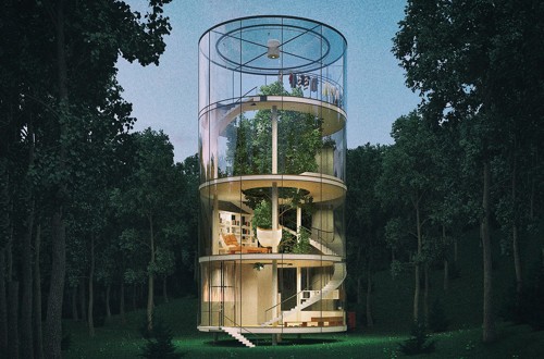 Eno drevo je pa le ostalo pokonci in postalo osrednji del arhitekture – klasična lesena hiška je namreč postala steklena. Več