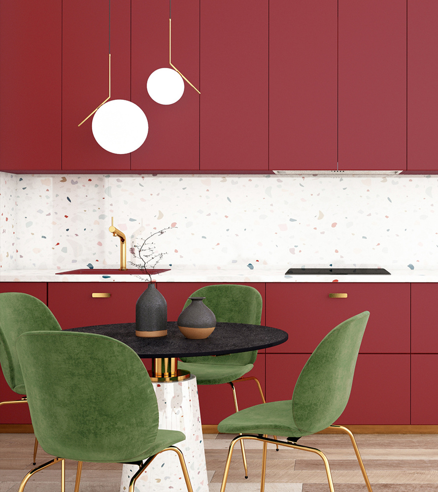 Neponovljivo življenjsko moč obdobja pomladi bodo v vaš dom vnesli poživljajoči barvni toni. Nepričakovani odtenki zelenega spektra lestvice se dopolnjujejo kot mladi poganjki s starimi listi ter ustvarjajo podlago za dodajanje živahnih tekstur. Brušena medenina, rožnata keramika in rumenkast tekstil dopolnijo toplino opečne nianse ter ustvarjajo nepričakovano modno podobo ambienta.