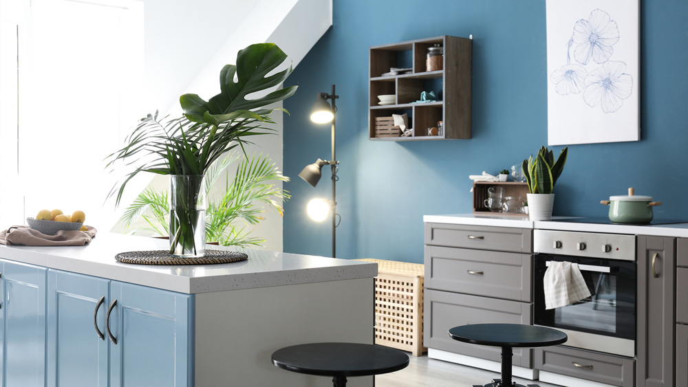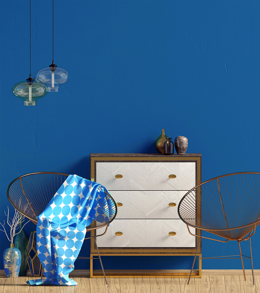 V žgočih poletnih mesecih nam bo lepoto zamolklo oranžnega tona dodatno poudaril kontrast s komplementarnimi modrikastimi niansami, ki spominjajo na osvežujočo vodo ali neskončno nebo ter v prostor vnesejo lahkotnost.