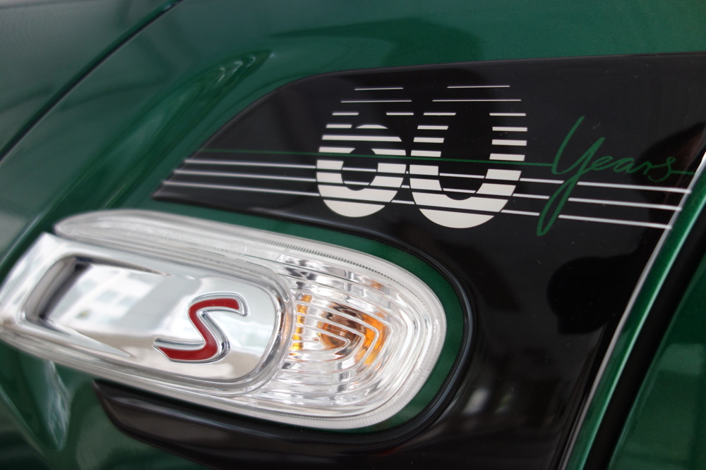 Z navdihom iz šestdesetih let in bogatega izročila so oblikovalci vozil MINI poustvarili britansko dirkaško zeleno karoserijo samo za te modele. Za obletnico značilni poudarki in obrobe obujajo duha prvotnih modelov z modernim pridihom, kar jim zagotavljajo nesmrtnost.