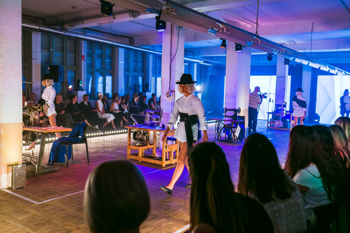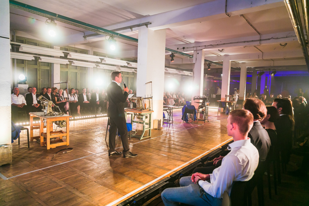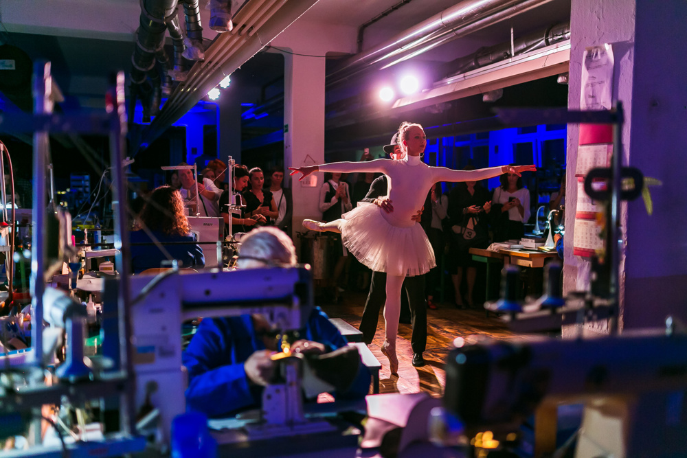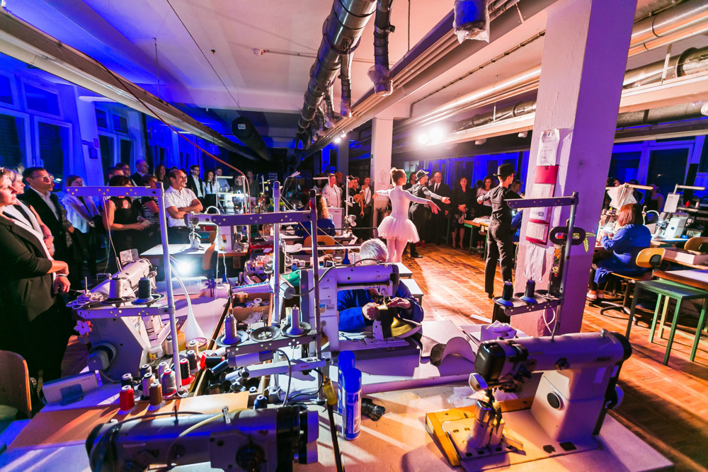 Goste iz sveta mode in estrade so sprejeli v šivalnici, kjer so jim pokazali, kako se bogata čevljarska tradicija spaja s sodobno industrijo in napredkom. Med sprehodom skozi tovarno so lahko doživeli pristno čevljarsko vzdušje, ki hrani duha izkušenih mojstrov. V žirovski tovarni dneve štejejo v parih, mesece v kolekcijah. Pri njih šteje strast, strokovnost, predanost in kreativnost, ki čevljarsko delavnico dan za dnem polni s svežimi idejami in interpretira globalne modne trende pri ustvarjanju funkcionalne mode.