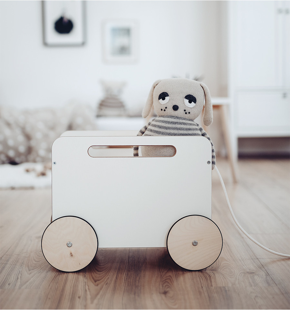 Starejši dojenčki in malčki bodo že živahnejši - uživali bodo pri potiskanju in pozibavanju na večjih predmetih - za zibanje izberimo otroške konjičke, za potiskanje pa na primer leseni otroški voziček ali samokolnico, ki bosta prišla prav še dolgo kot prostor za pospravljanje drugih igrač.