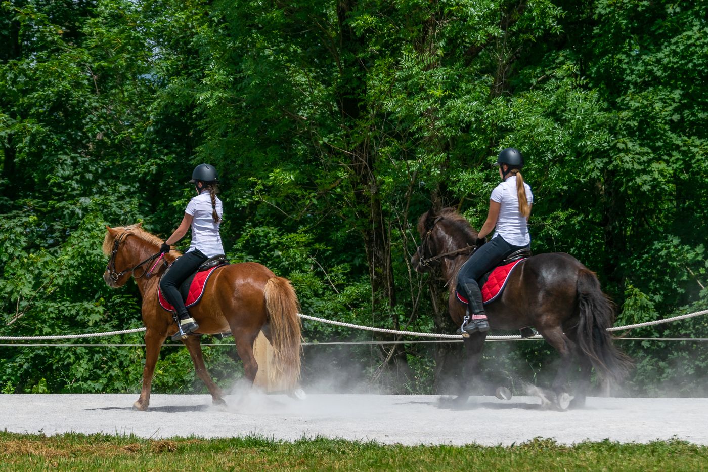 Izjemen način učenja na dolge proge, kjer posamezne vsebine za katere v šoli jahanja po navadi zmanjka časa obdelamo bolj podrobno in celovito ali pa le prvi stik s konji, ki nam daje samozavest in moč da vstopimo v konjeništvo. Otroci in odrasli se ob celodnevnem druženju s konji sprostijo in poglobijo v posamezne vsebine v povezavi z konji. Splošno znano je, da so konji odlični terapevti, ki od nas zahtevajo popolno zbranost, če želimo da z nami sodelujejo in tega nas učijo vsako minuto, ki jo preživimo z njimi. Teme delavnic: dan preživet v čredi islandskih konj, delo s konji na tleh, oskrba konja od A do Ž, vse kar moram vedeti pri nakupu konja, igra s konji, biomehanika jahanja.