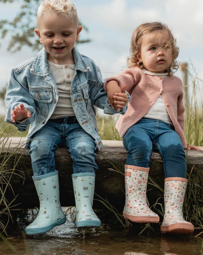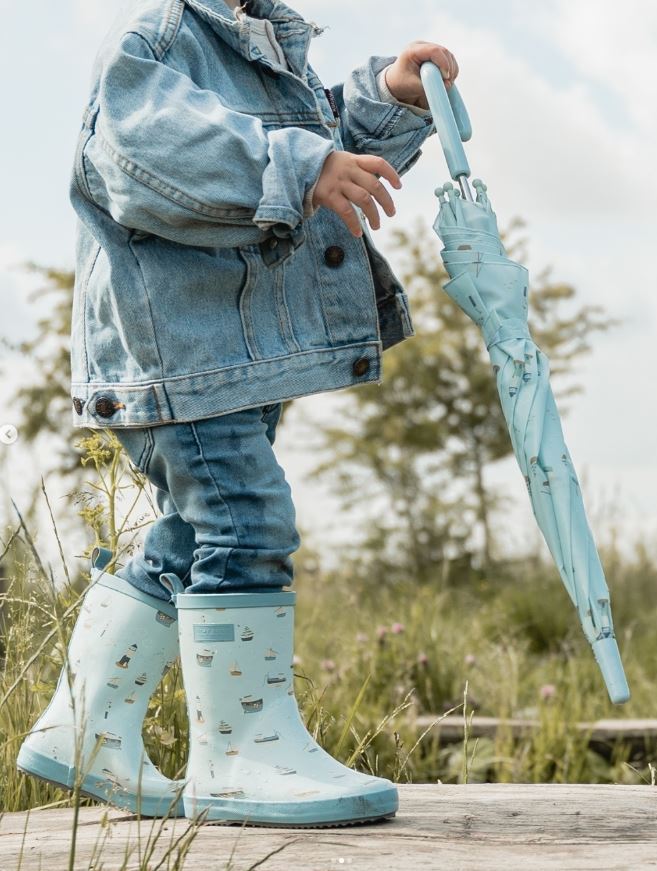 Dodajte malo zabave deževnem videzu vašega malčka z navtično temo Little Dutch Sailors Bay z jadrnicami in galebi. Ti dežni škornji so narejeni iz gume s tekstilno podlogo, odstranljivim vložkom in teksturiranim in protizdrsnim podplatom. Popolni so za avanture na prostem! Kombinirajte jih z dežnikom za usklajen videz. S tem ljubkim dežnikom vaš malček komaj čaka, da gre ven na deževen dan.