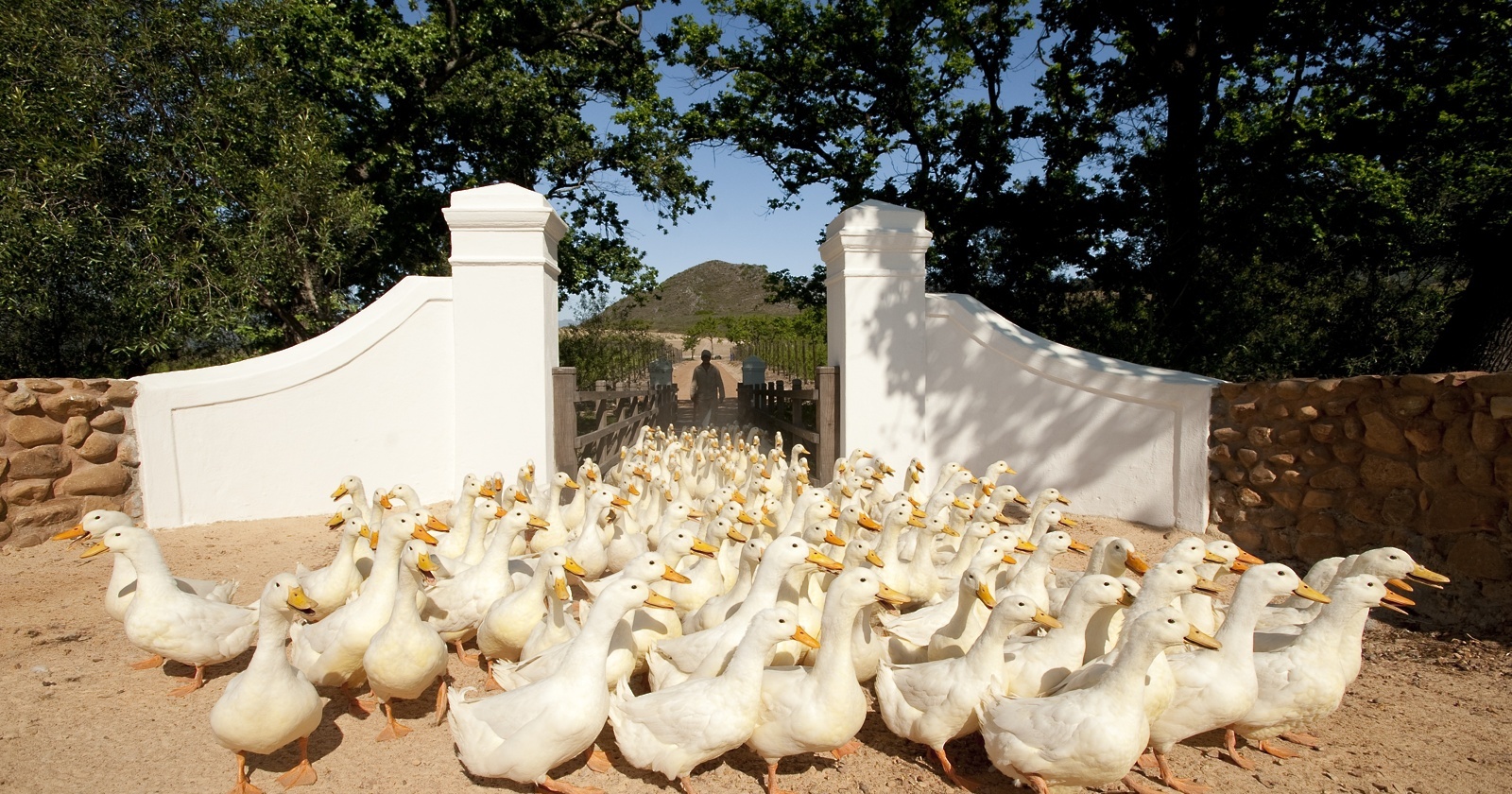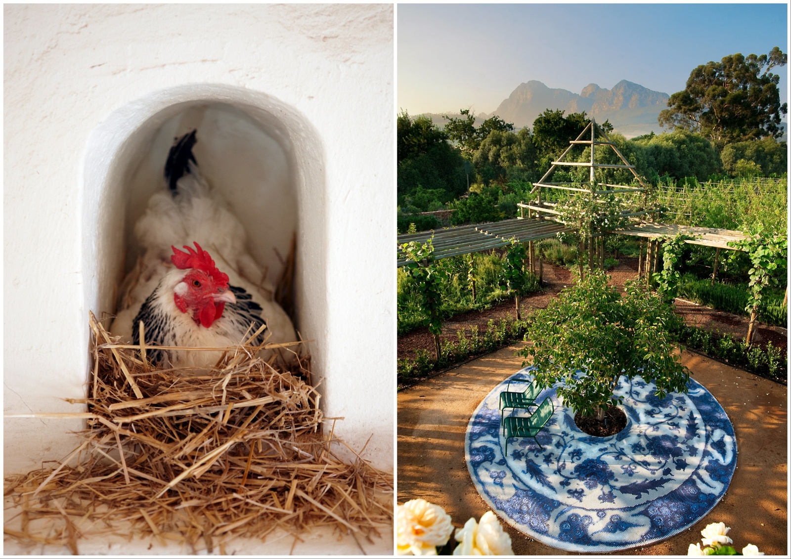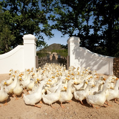 Sredi slikovite doline Drakenstein, ki jo s treh strani obdajajo mogočne gore, le slabo uro vožnje iz Cape Towna, se na dvesto hektarih ponuja vrhunsko doživetje šik turistične kmetije, ki v resnici bolj kot na farmo spominja na romantično utopijo.