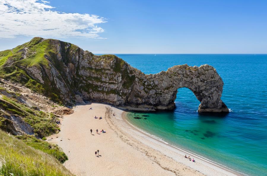 Morda nekoliko presenetljivo, a osupljivo lepo plažo lahko najdemo tudi v Angliji. Plaža Durdle Door se ponaša z velikanskim kamnitim lokom.